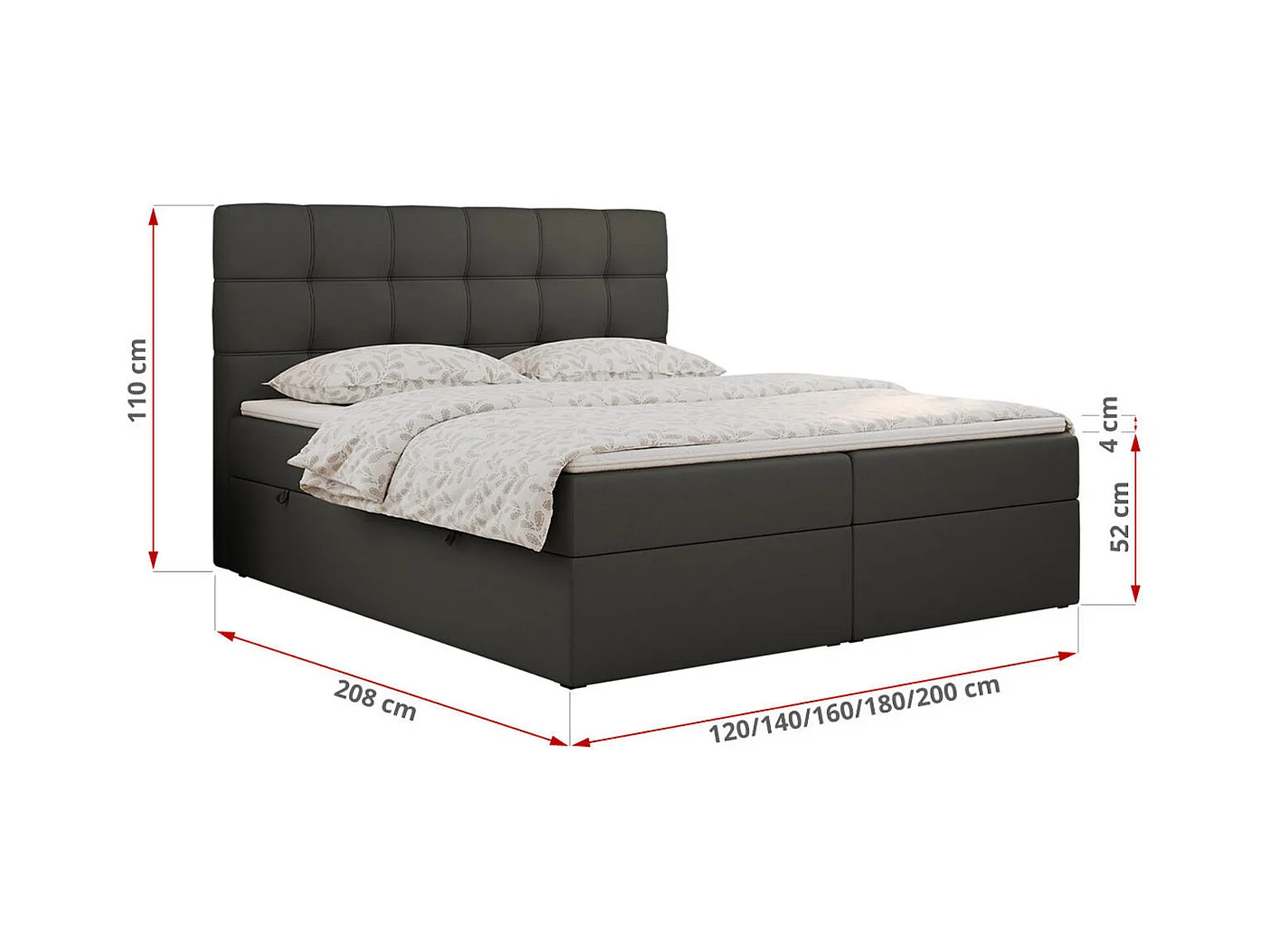 Boxspringbett ERNI - mit gestepptem Kopfteil, Polsterbett, Multipocket-Matratze und Topper, Bettkästen - 180x200 cm - H3 - Dunkelgrau Kunstleder