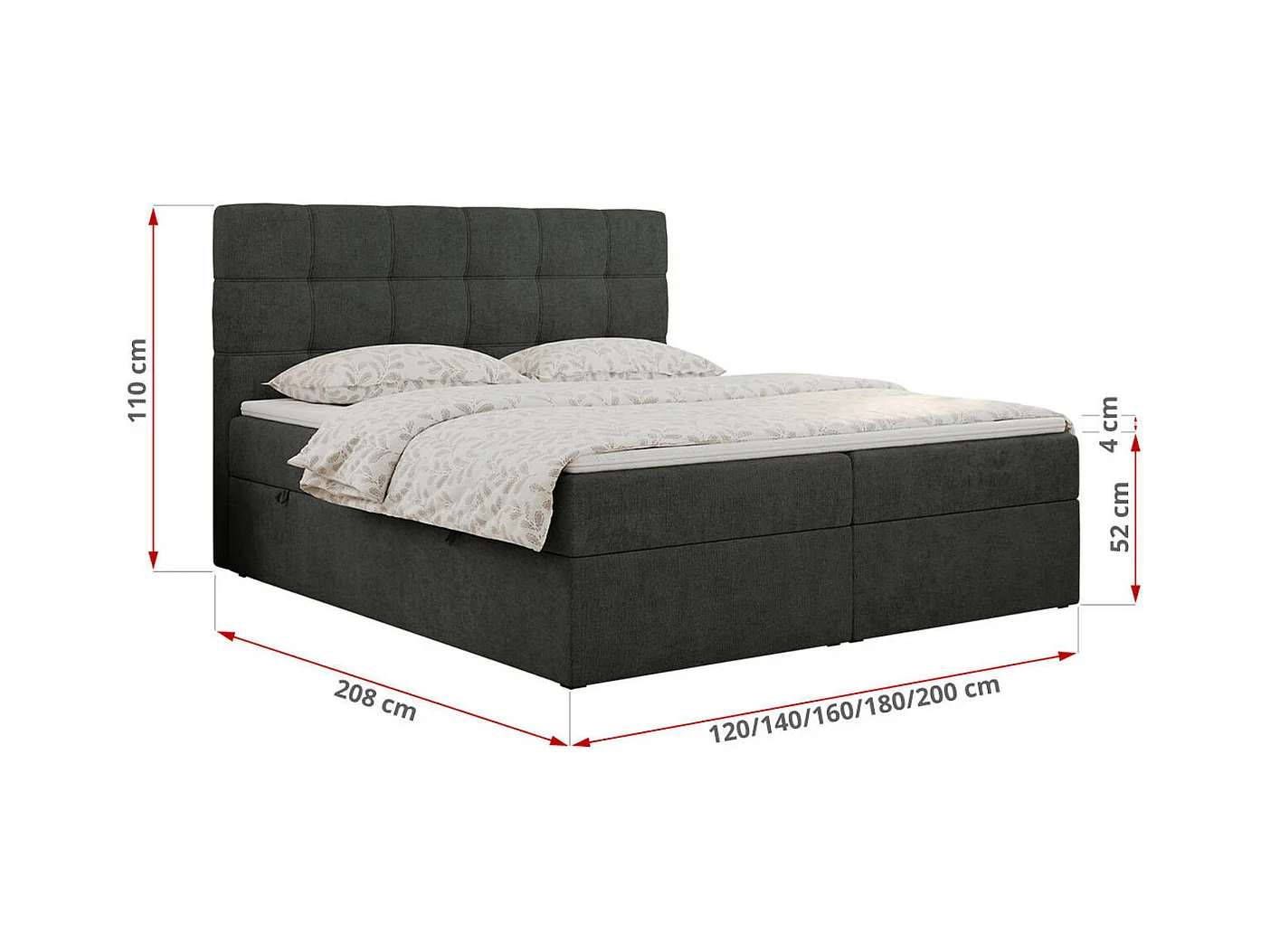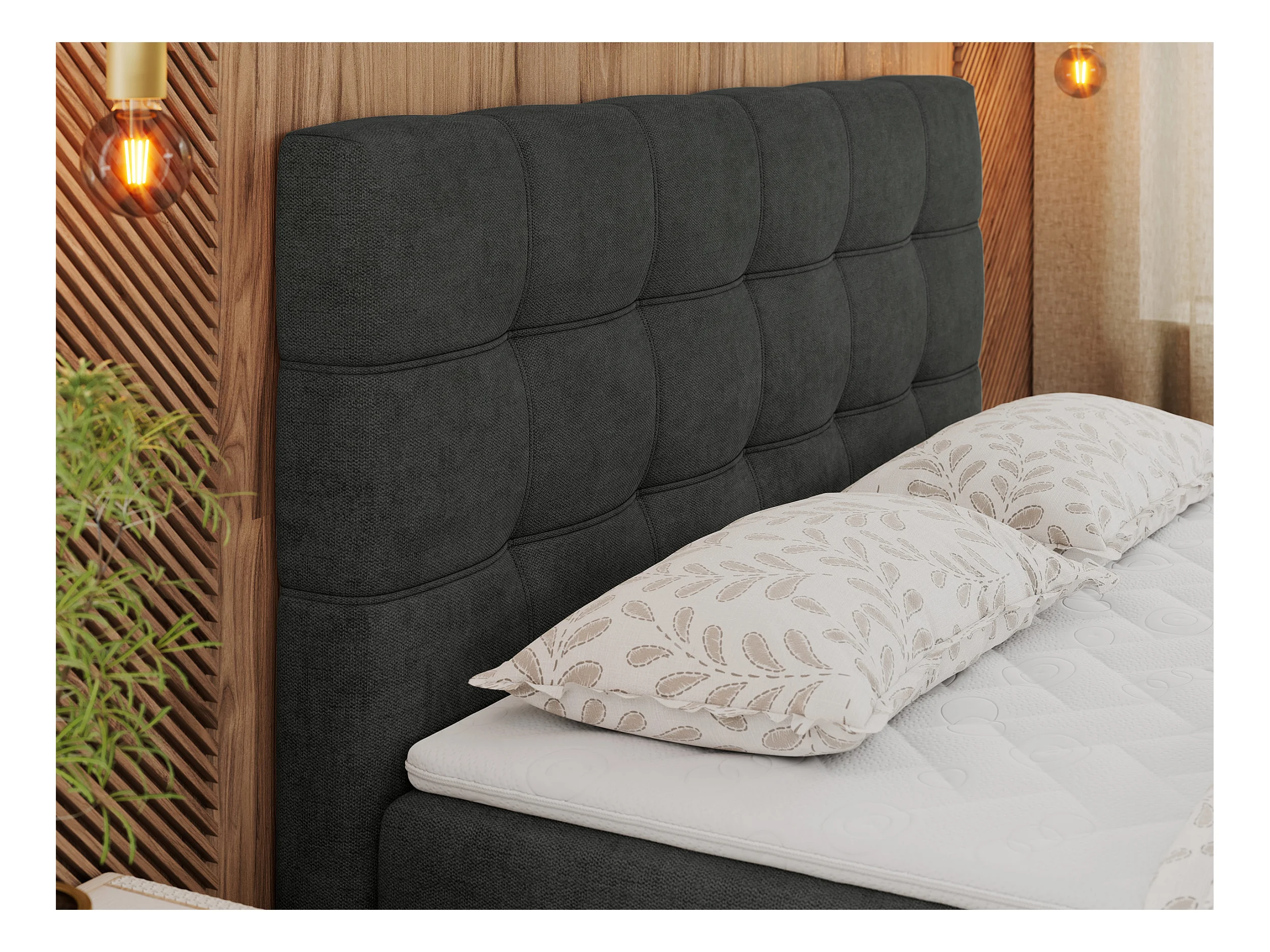 Boxspringbett ERNI - mit gestepptem Kopfteil, Polsterbett, Multipocket-Matratze und Topper, Bettkästen - 200x200 cm - H3 - Dunkelgrau Stukture