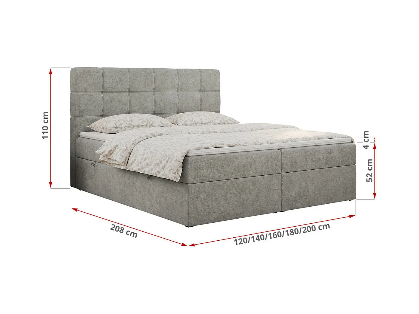 Boxspringbett ERNI - mit gestepptem Kopfteil, Polsterbett, Multipocket-Matratze und Topper, Bettkästen - 200x200 cm - H3 - Hellgrau Stukture