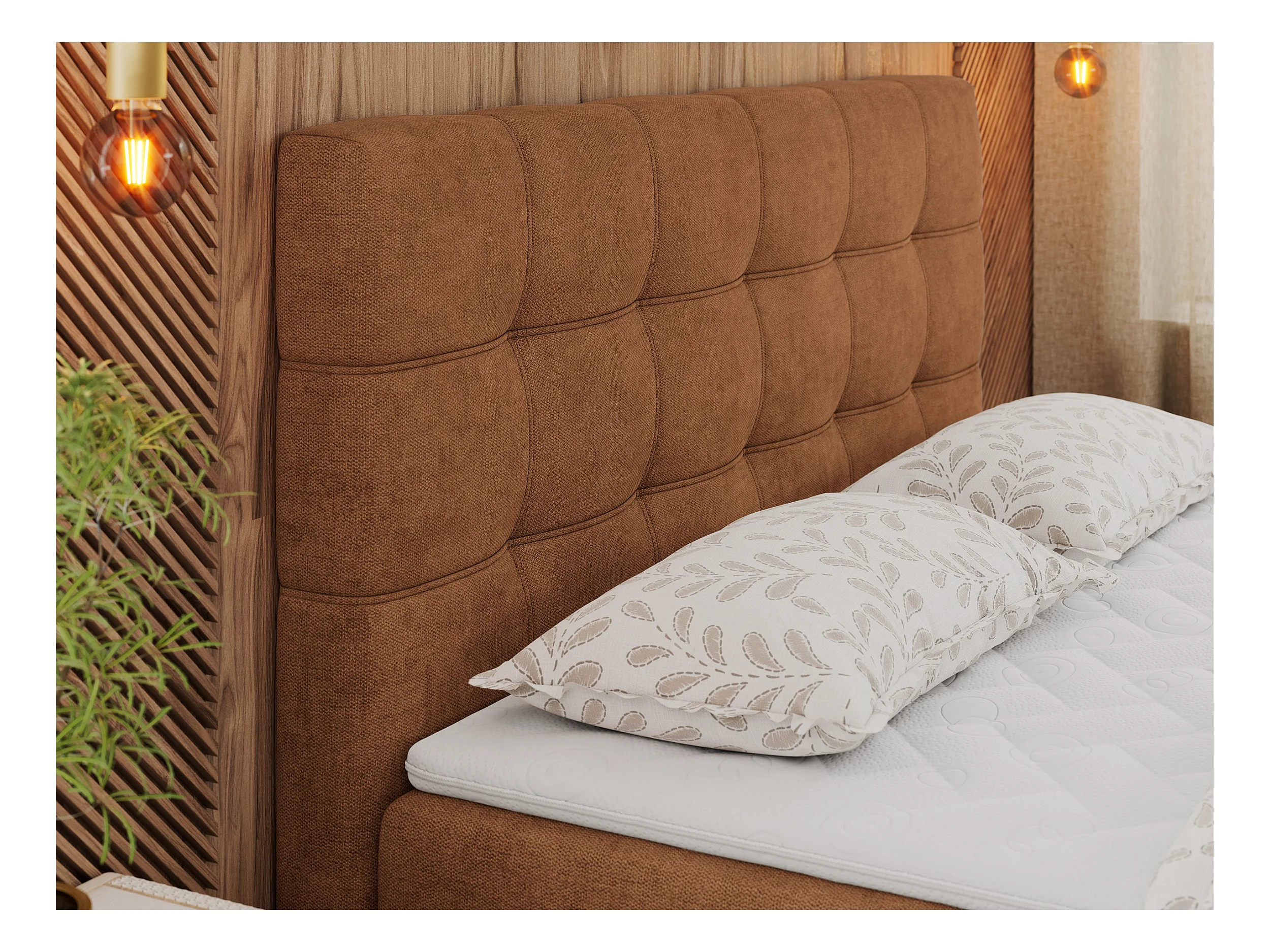 Boxspringbett ERNI - mit gestepptem Kopfteil, Polsterbett, Multipocket-Matratze und Topper, Bettkästen - 200x200 cm - H3 - Orange Stukture