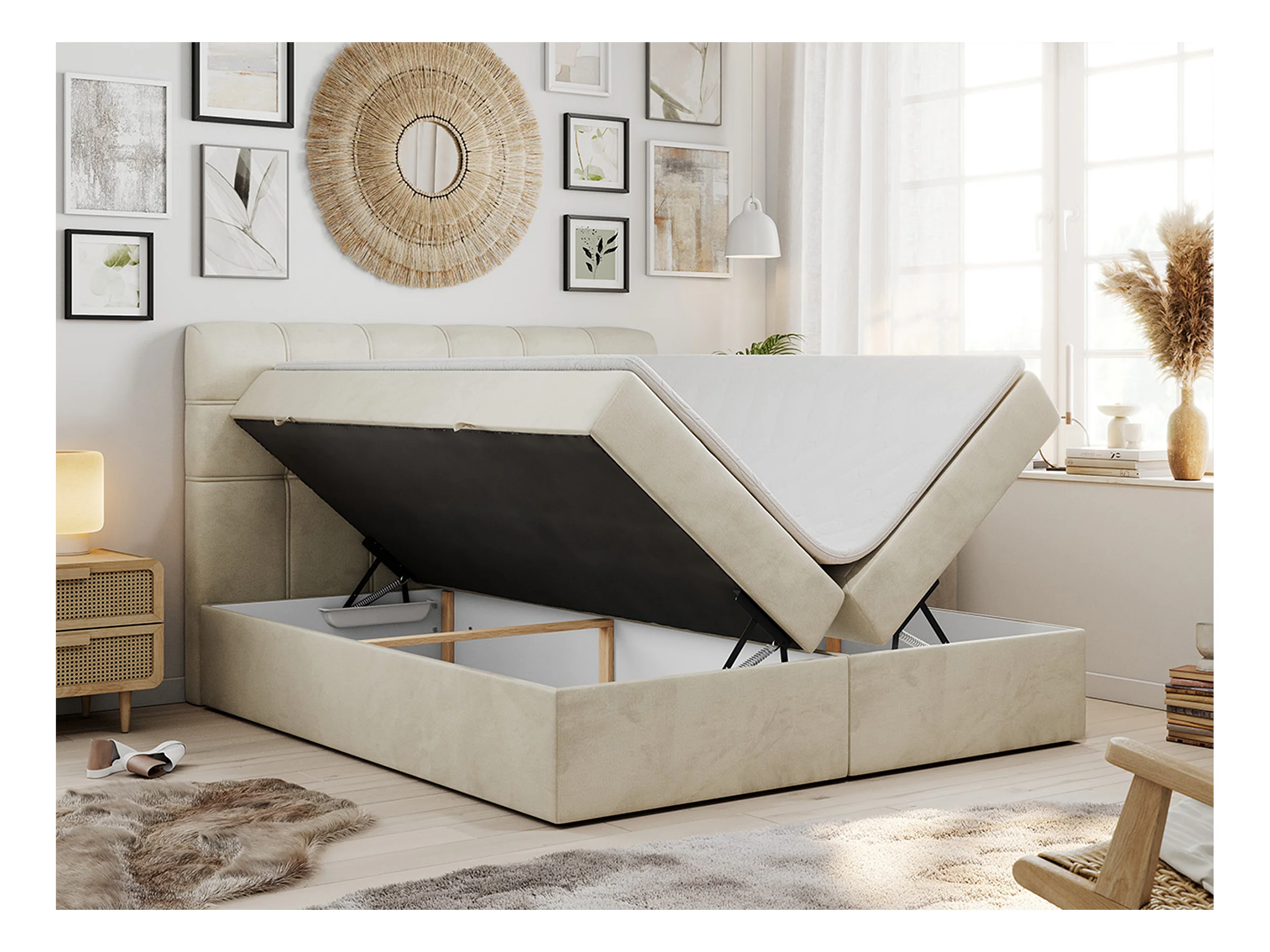 Boxspringbett FAST - Doppelbett mit Stauraum, gestepptes Kopfteil, Multipocket-Matratze - 160x200 cm - H3 - Beige Velvet