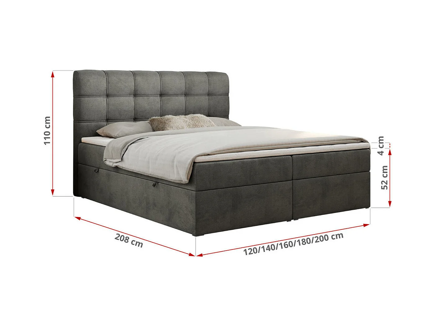 Boxspringbett FAST - Doppelbett mit Stauraum, gestepptes Kopfteil, Multipocket-Matratze - 160x200 cm - H4 - Dunkelgrau Velvet