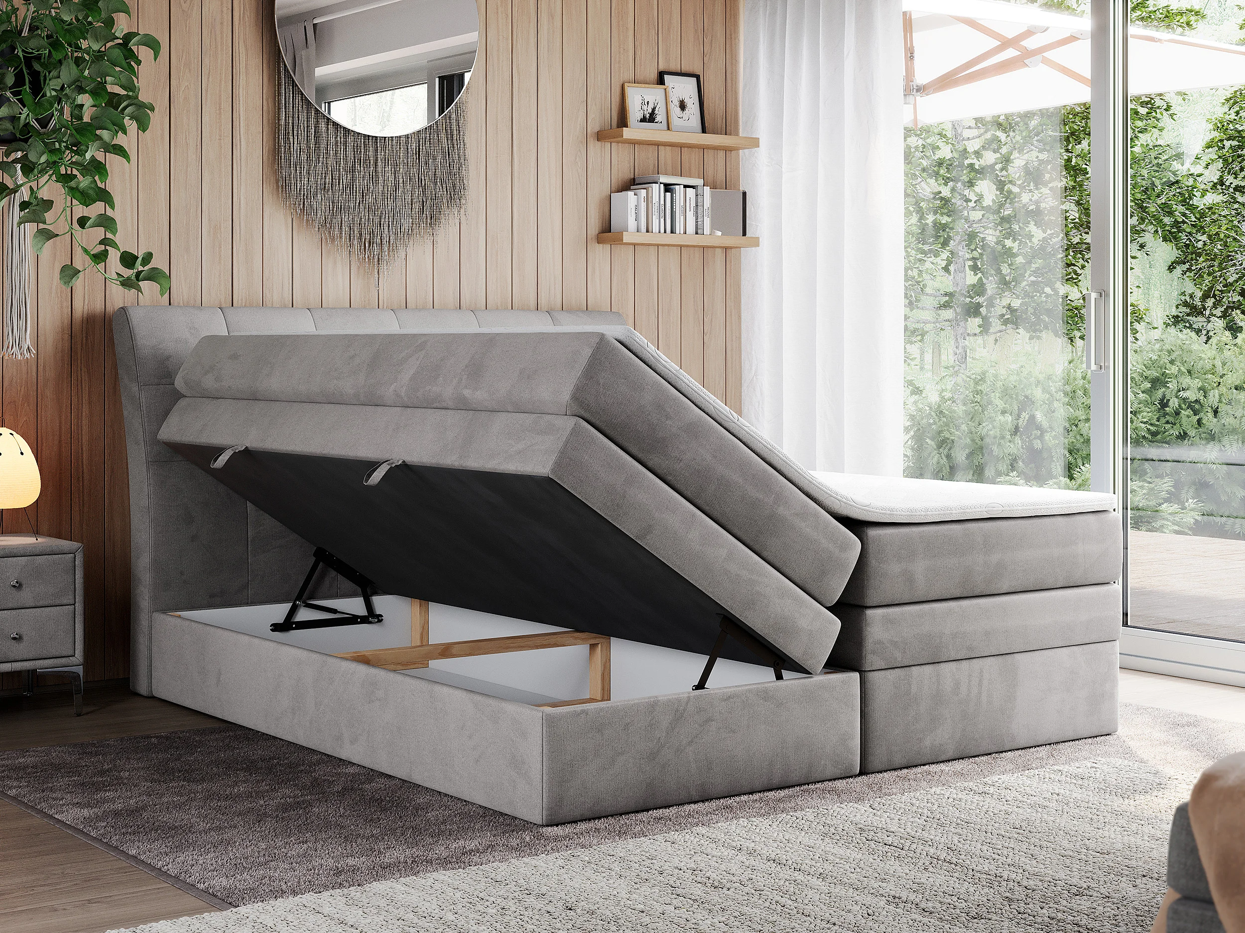 Boxspringbett GOLD 10 KING mit genähtes Kopfteil und Stauraum, zwei Multipocket-Matratze - 160x200 cm - H4 - Hellgrau Velvet