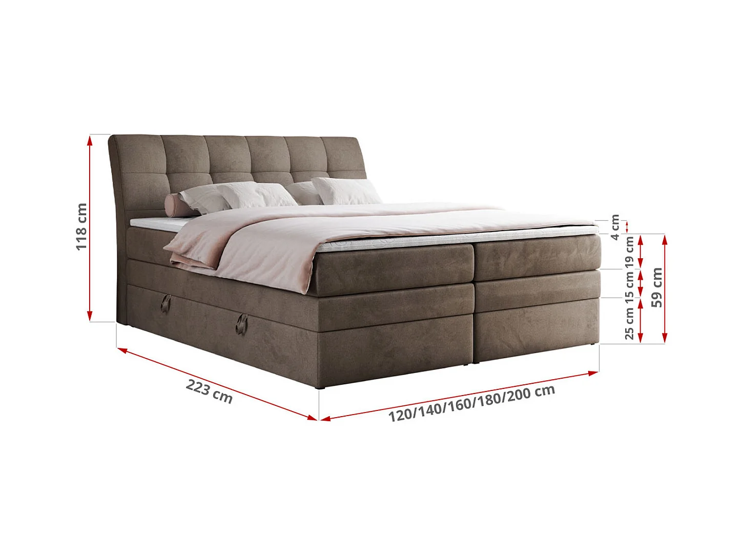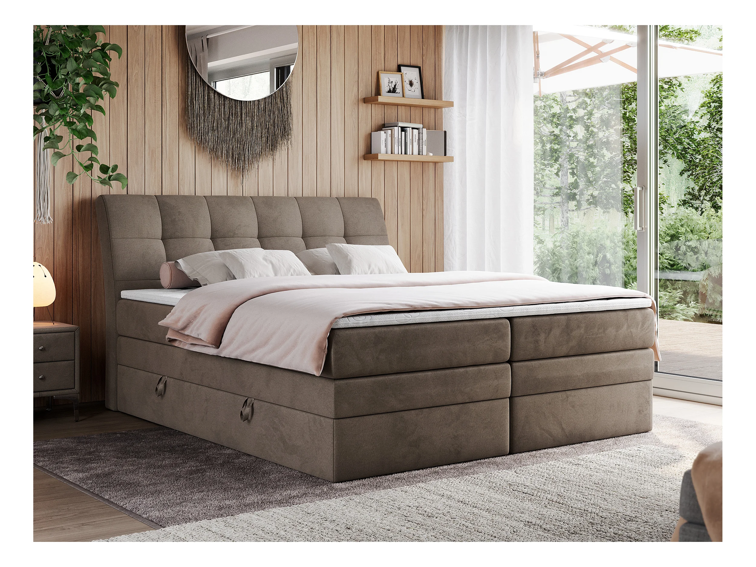Boxspringbett GOLD 10 KING mit genähtes Kopfteil und Stauraum, zwei Multipocket-Matratze - 180x200 cm - H3 - Braun Velvet