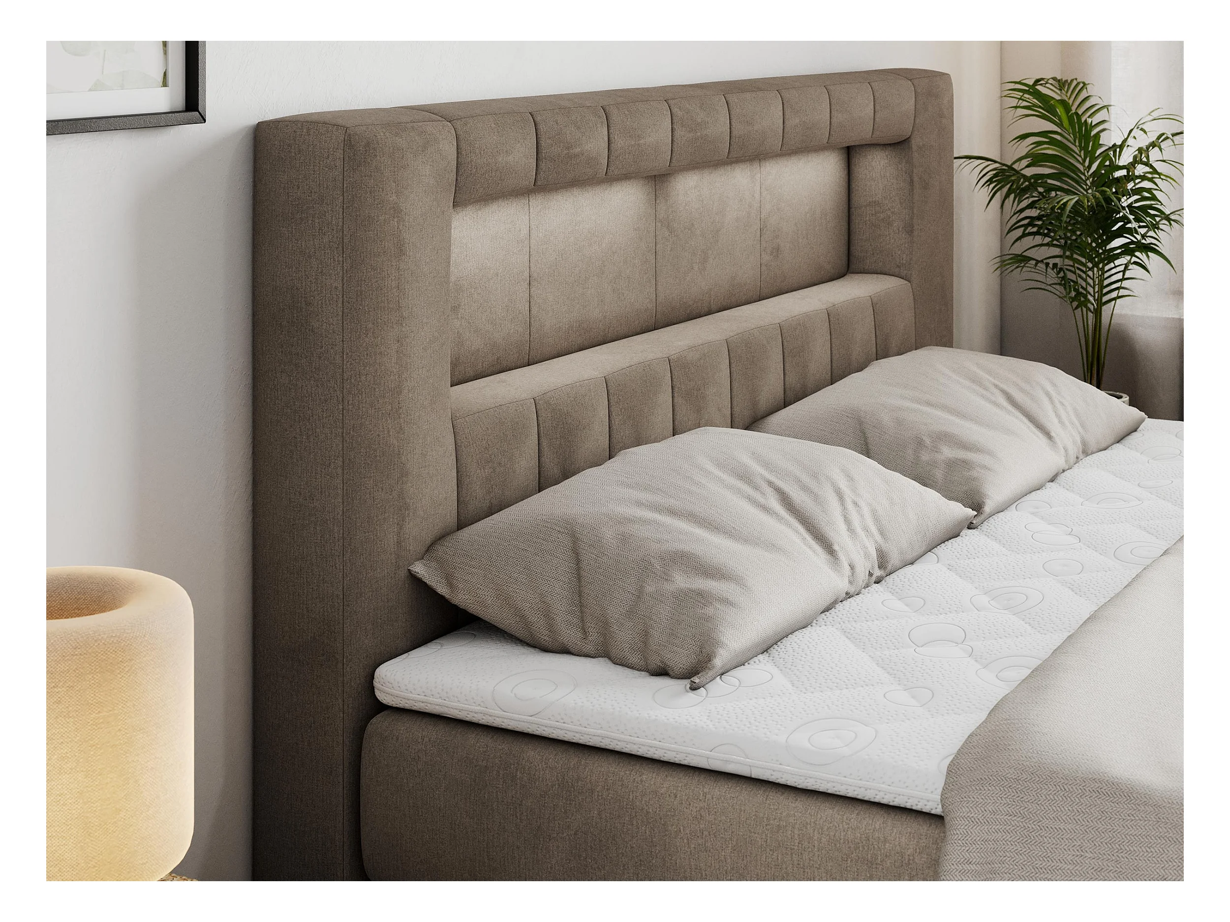 Boxspringbett GOLD 5 KING mit Stauraum, zwei Bettkästen, LED-Beleuchtung, Multipocket-Matratze - 120x200 cm - H3 - Braun Velvet