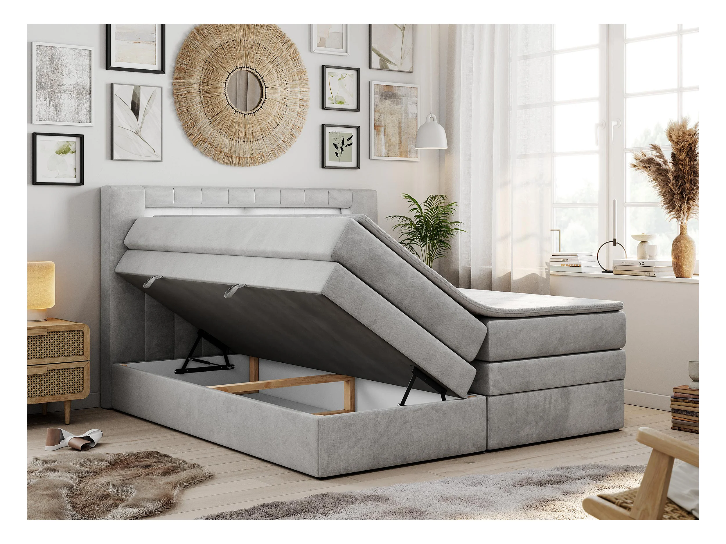 Boxspringbett GOLD 5 KING mit Stauraum, zwei Bettkästen, LED-Beleuchtung, Multipocket-Matratze - 140x200 cm - H4 - Hellgrau Velvet