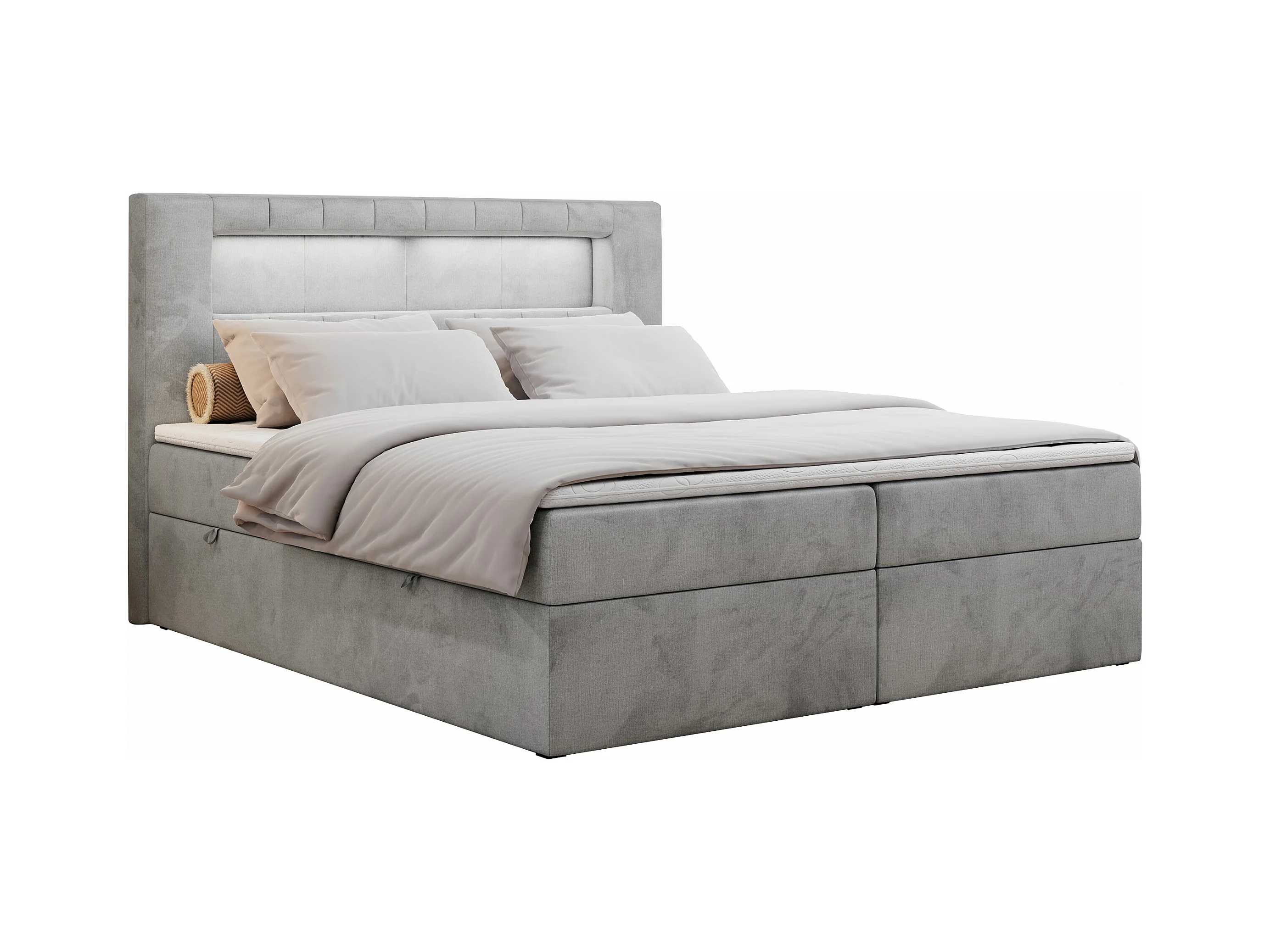 Boxspringbett GOLD 5 mit Multipocket-Matratze und LED, zwei Bettkästen - 120x200 cm - H3 - Hellgrau Velvet