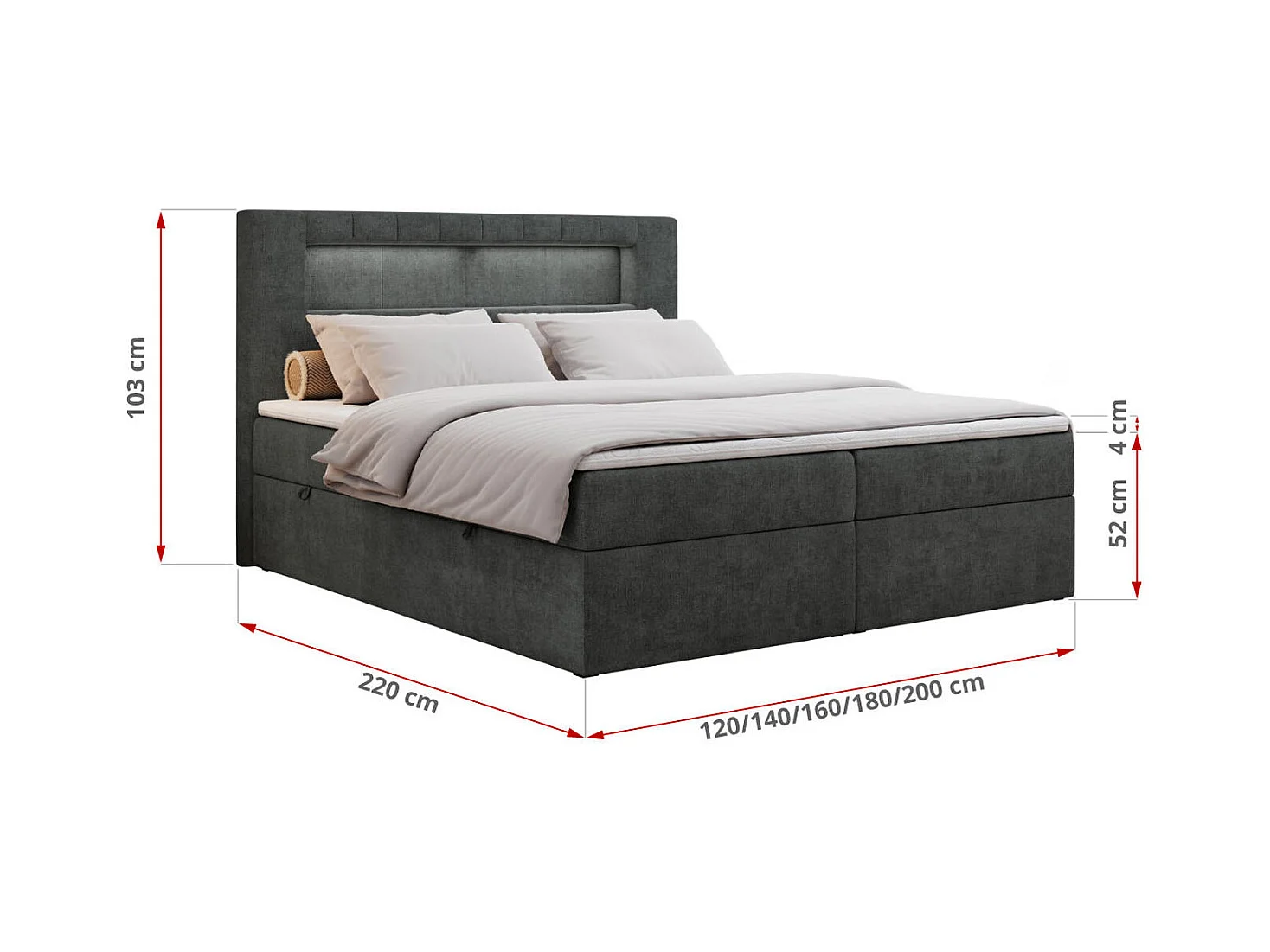 Boxspringbett GOLD 5 mit Multipocket-Matratze und LED, zwei Bettkästen - 120x200 cm - H4 - Dunkelgrau Strukture