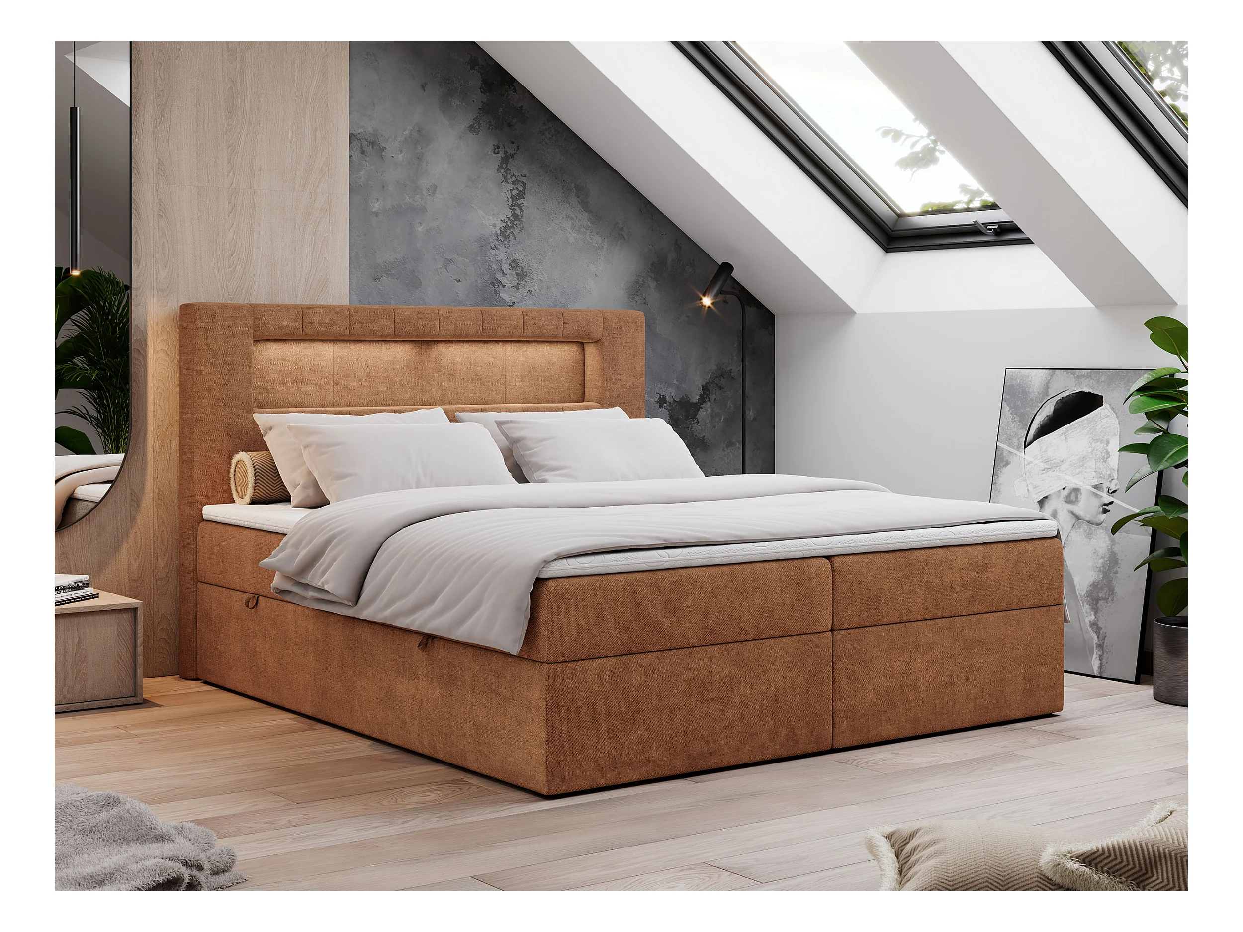 Boxspringbett GOLD 5 mit Multipocket-Matratze und LED, zwei Bettkästen - 140x200 cm - H4 - Orange Strukture