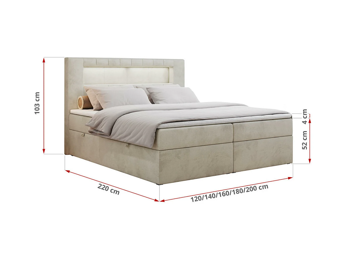 Boxspringbett GOLD 5 mit Multipocket-Matratze und LED, zwei Bettkästen - 160x200 cm - H3 - Beige Velvet