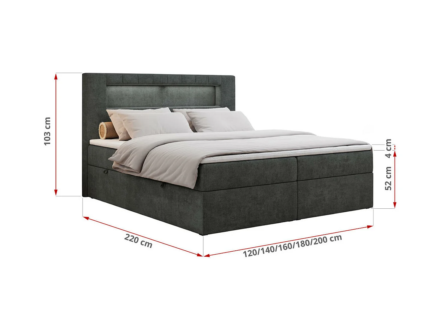 Boxspringbett GOLD 5 mit Multipocket-Matratze und LED, zwei Bettkästen - 180x200 cm - H4 - Dunkelgrau Strukture