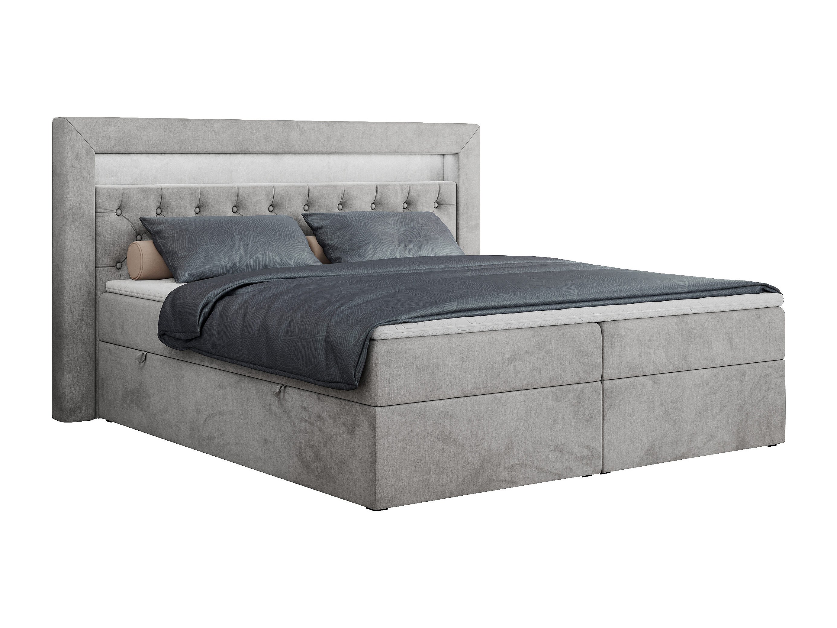 Boxspringbett GOLD 6, Doppelbett mit Stauraum, LED-Beleuchtung, gesteppte Kopfstütze - 120x200 cm - H3 - Hellgrau Velvet
