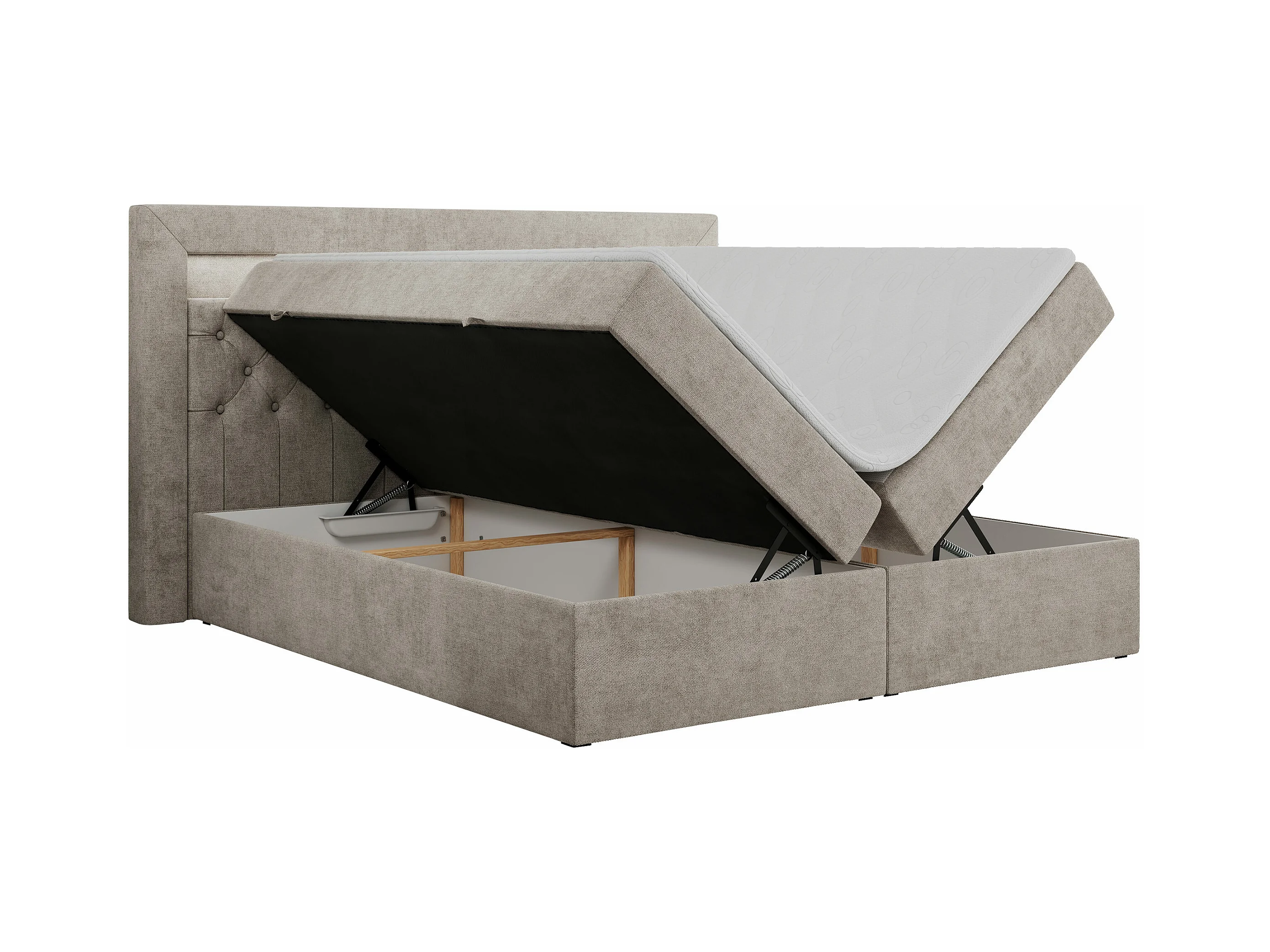 Boxspringbett GOLD 6, Doppelbett mit Stauraum, LED-Beleuchtung, gesteppte Kopfstütze - 120x200 cm - H4 - Beige Strukture