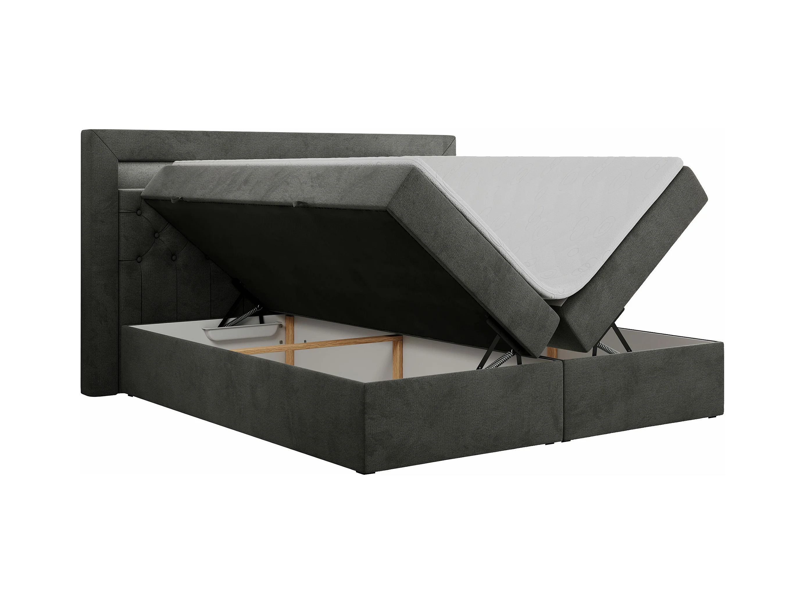 Boxspringbett GOLD 6, Doppelbett mit Stauraum, LED-Beleuchtung, gesteppte Kopfstütze - 180x200 cm - H4 - Dunkelgrau Velvet