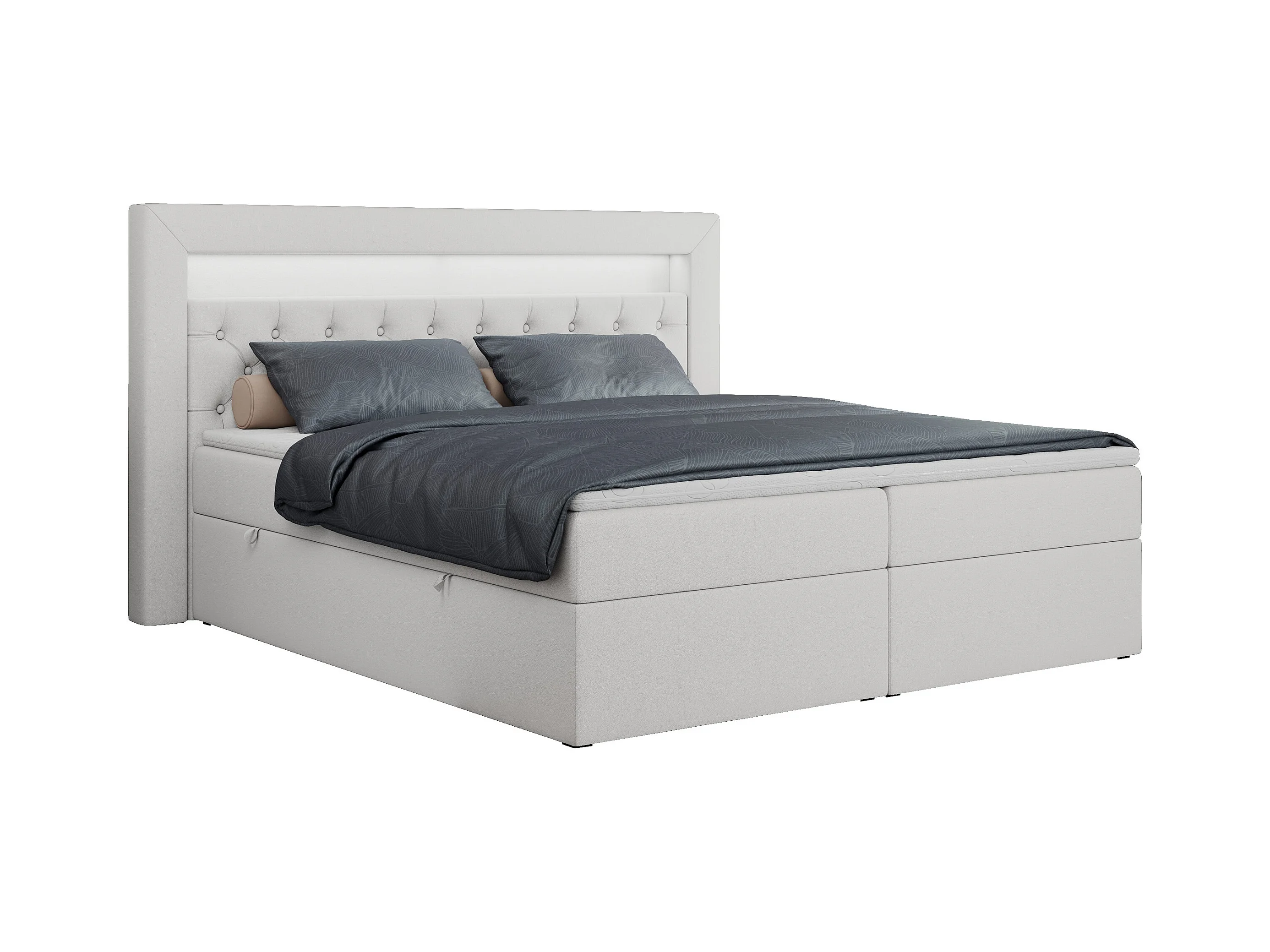 Boxspringbett GOLD 6, Doppelbett mit Stauraum, LED-Beleuchtung, gesteppte Kopfstütze - 180x200 cm - H4 - Weiß Kunstleder