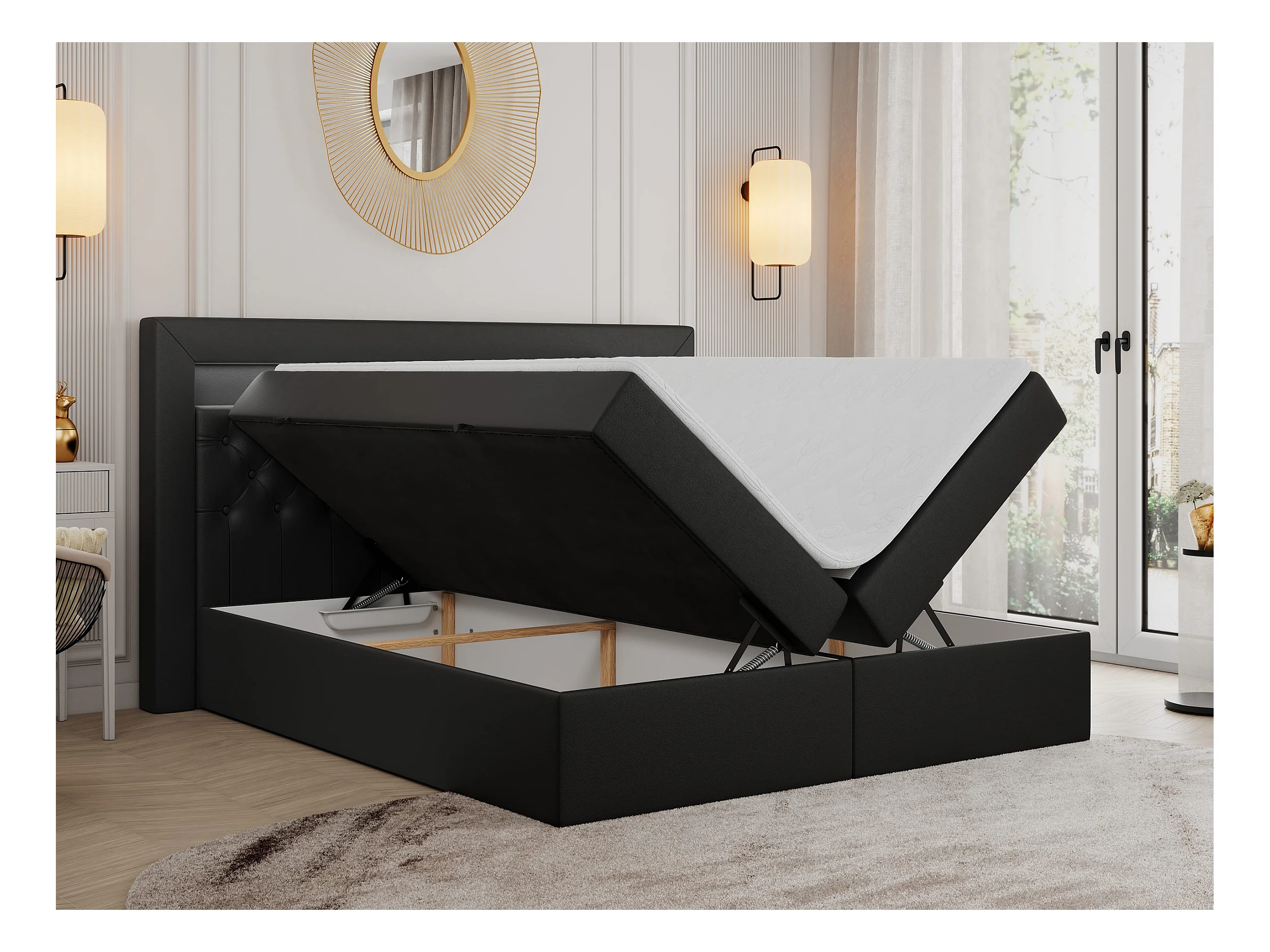 Boxspringbett GOLD 6, Doppelbett mit Stauraum, LED-Beleuchtung, gesteppte Kopfstütze - 200x200 cm - H4 - Schwarz Kunstleder