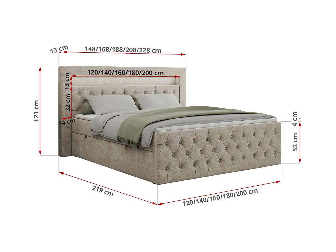 Boxspringbett GOLD 9 mit Stauraum, Multipocket-Matratze, gestepptes Bett, LED Beleuchtung - 120x200 cm - H4 - Beige Strukture