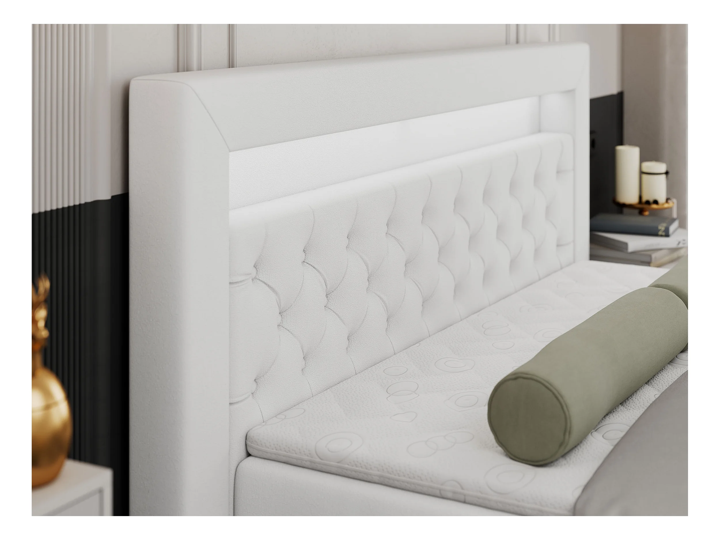 Boxspringbett GOLD 9 mit Stauraum, Multipocket-Matratze, gestepptes Bett, LED Beleuchtung - 120x200 cm - H4 - Weiß Kunstleder