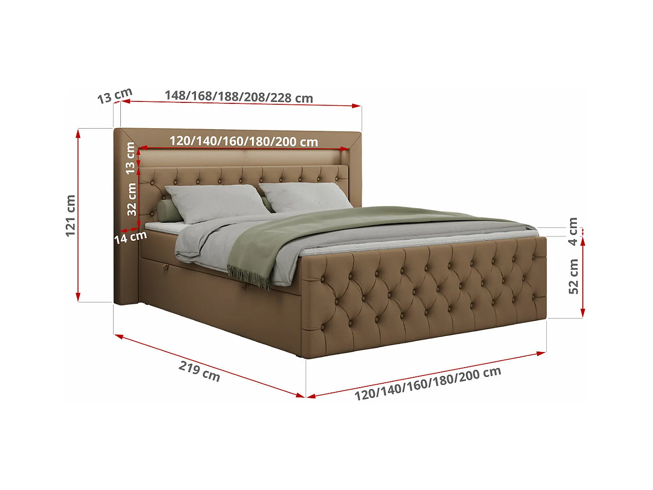 Boxspringbett GOLD 9 mit Stauraum, Multipocket-Matratze, gestepptes Bett, LED Beleuchtung - 140x200 cm - H3 - Braun Kunstleder