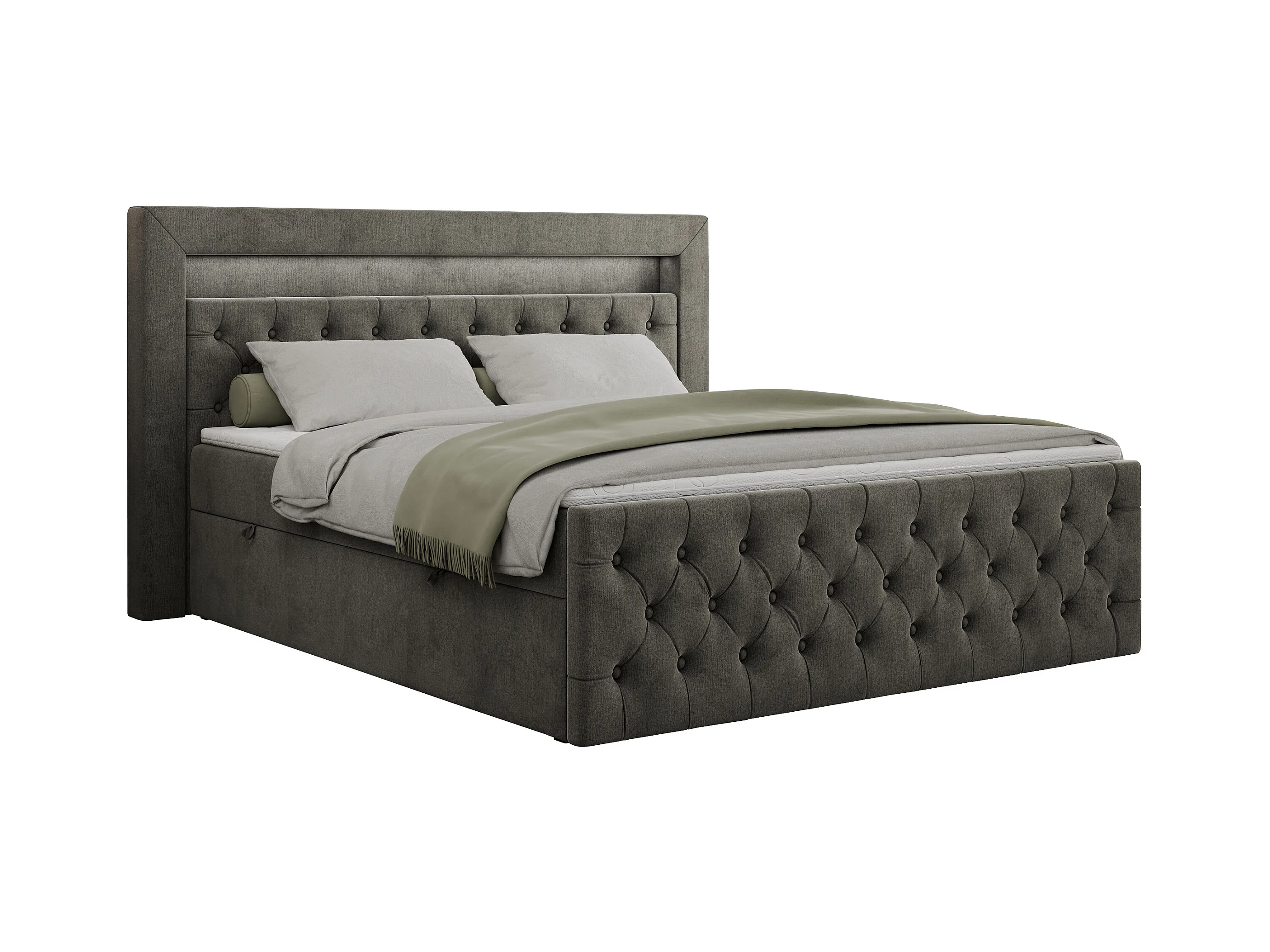 Boxspringbett GOLD 9 mit Stauraum, Multipocket-Matratze, gestepptes Bett, LED Beleuchtung - 140x200 cm - H3 - Dunkelgrau Velvet