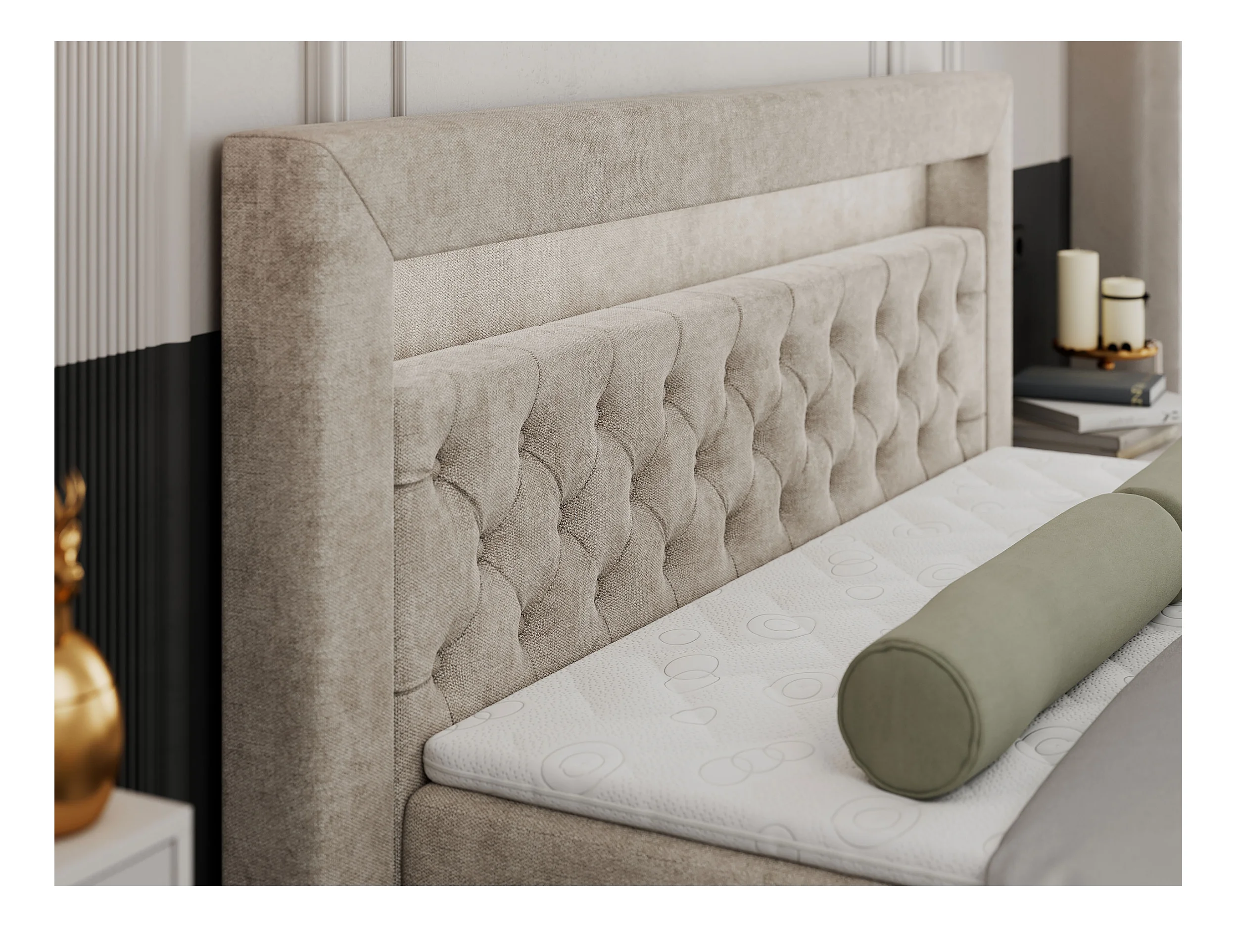 Boxspringbett GOLD 9 mit Stauraum, Multipocket-Matratze, gestepptes Bett, LED Beleuchtung - 160x200 cm - H3 - Beige Strukture