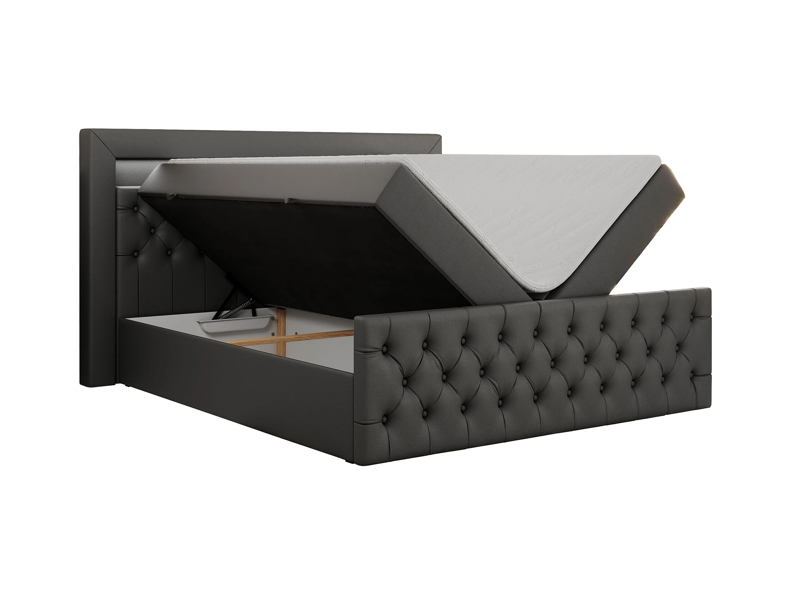Boxspringbett GOLD 9 mit Stauraum, Multipocket-Matratze, gestepptes Bett, LED Beleuchtung - 180x200 cm - H3 - Dunkelgrau Kunstleder