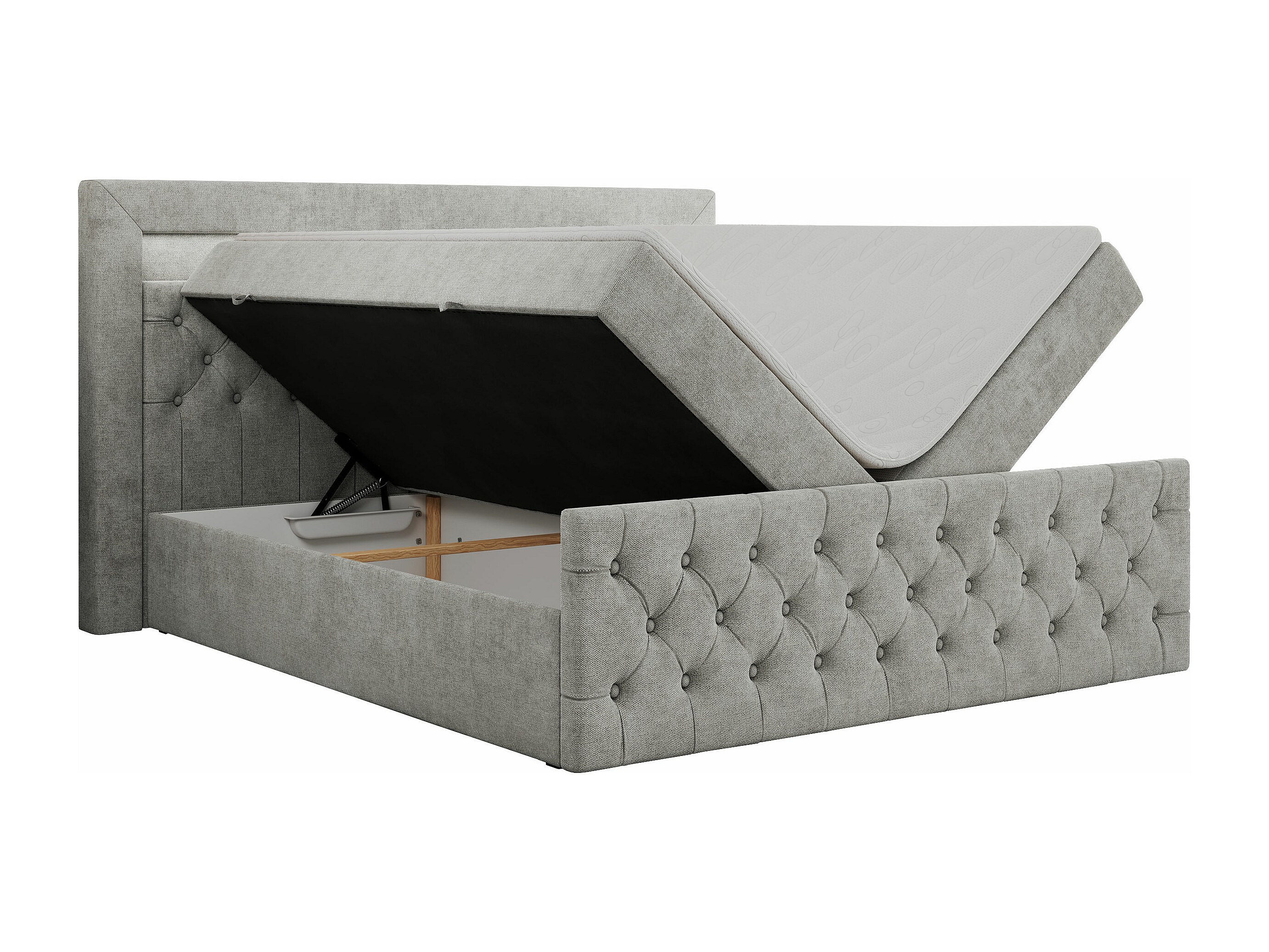 Boxspringbett GOLD 9 mit Stauraum, Multipocket-Matratze, gestepptes Bett, LED Beleuchtung - 180x200 cm - H4 - Hellgrau Strukture