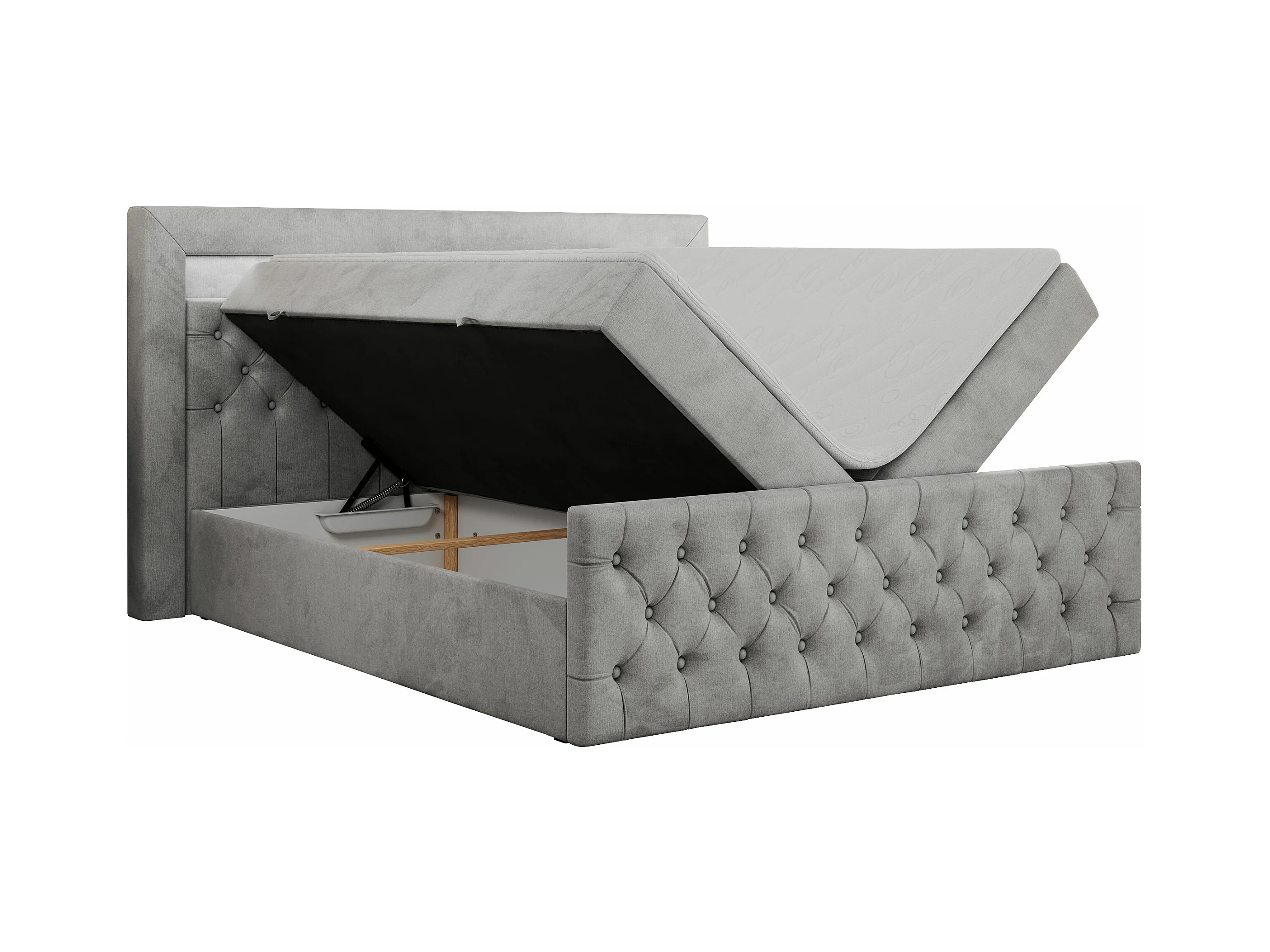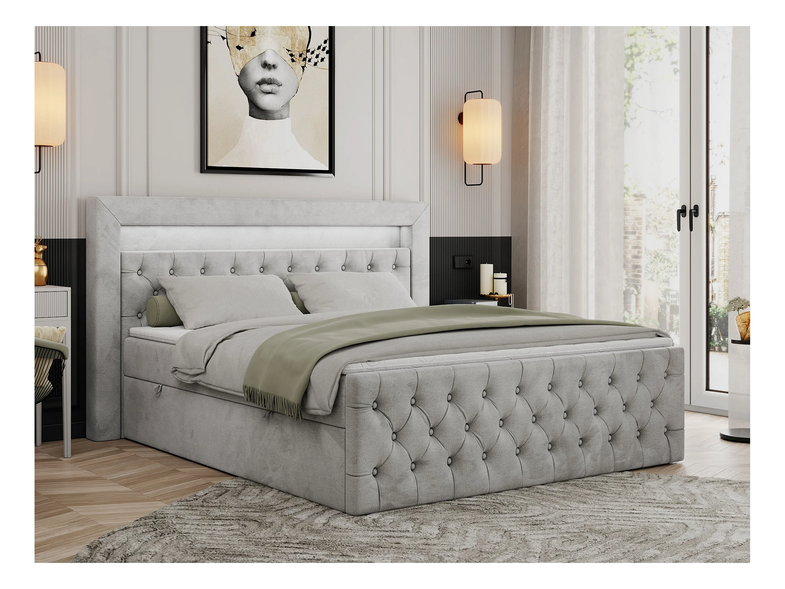 Boxspringbett GOLD 9 mit Stauraum, Multipocket-Matratze, gestepptes Bett, LED Beleuchtung - 180x200 cm - H4 - Hellgrau Velvet