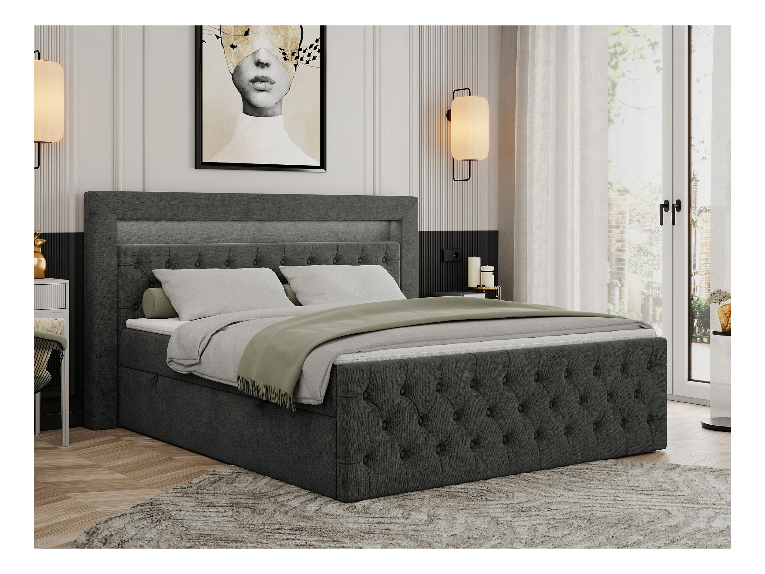 Boxspringbett GOLD 9 mit Stauraum, Multipocket-Matratze, gestepptes Bett, LED Beleuchtung - 200x200 cm - H3 - Dunkelgrau Strukture