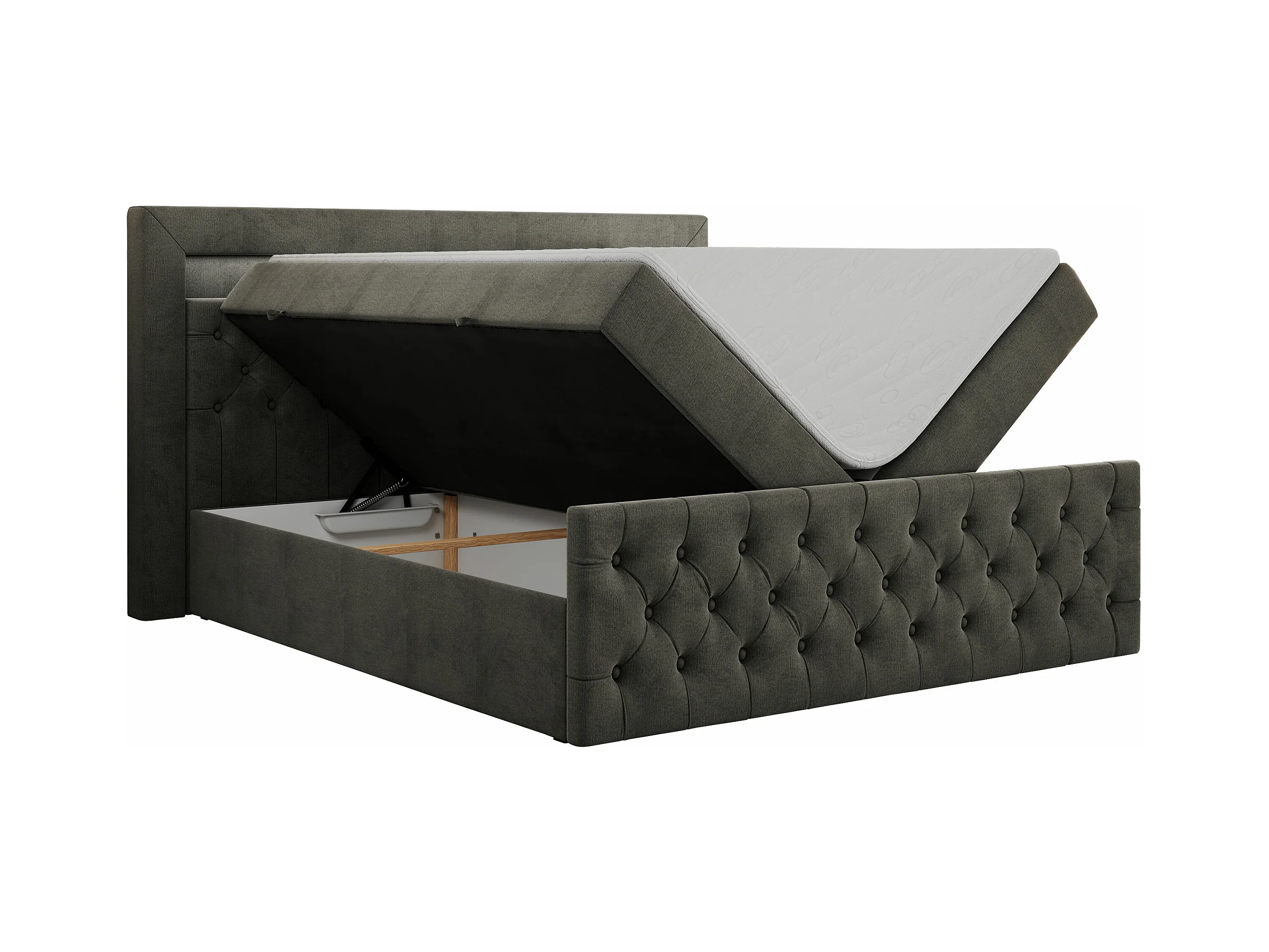 Boxspringbett GOLD 9 mit Stauraum, Multipocket-Matratze, gestepptes Bett, LED Beleuchtung - 200x200 cm - H3 - Dunkelgrau Velvet