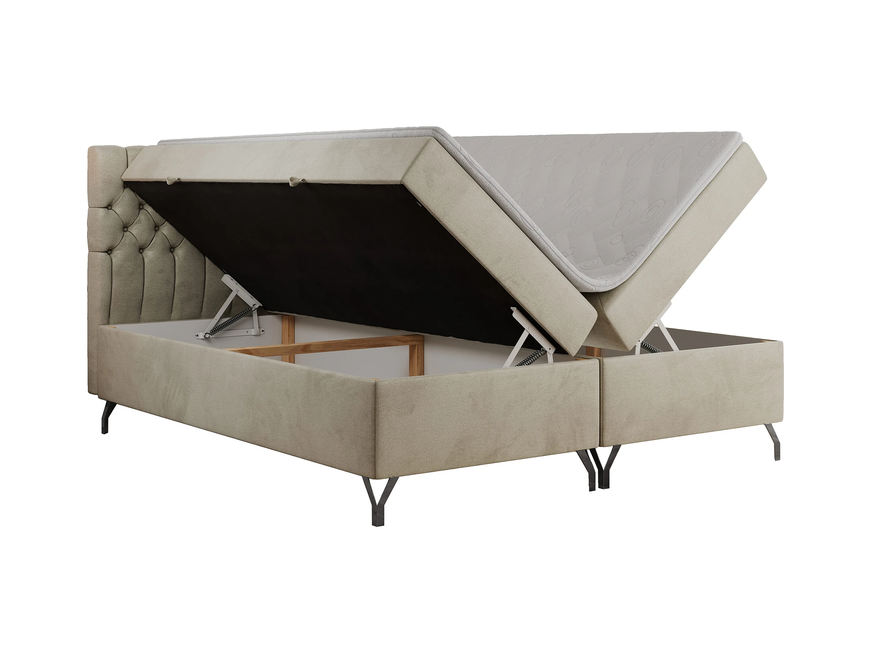 Boxspringbett GRIMALDI mit zwei Bettkästen, gesteppter Kopfstütze, Metallfüßen - 120x200 cm - H4 - Beige Velvet