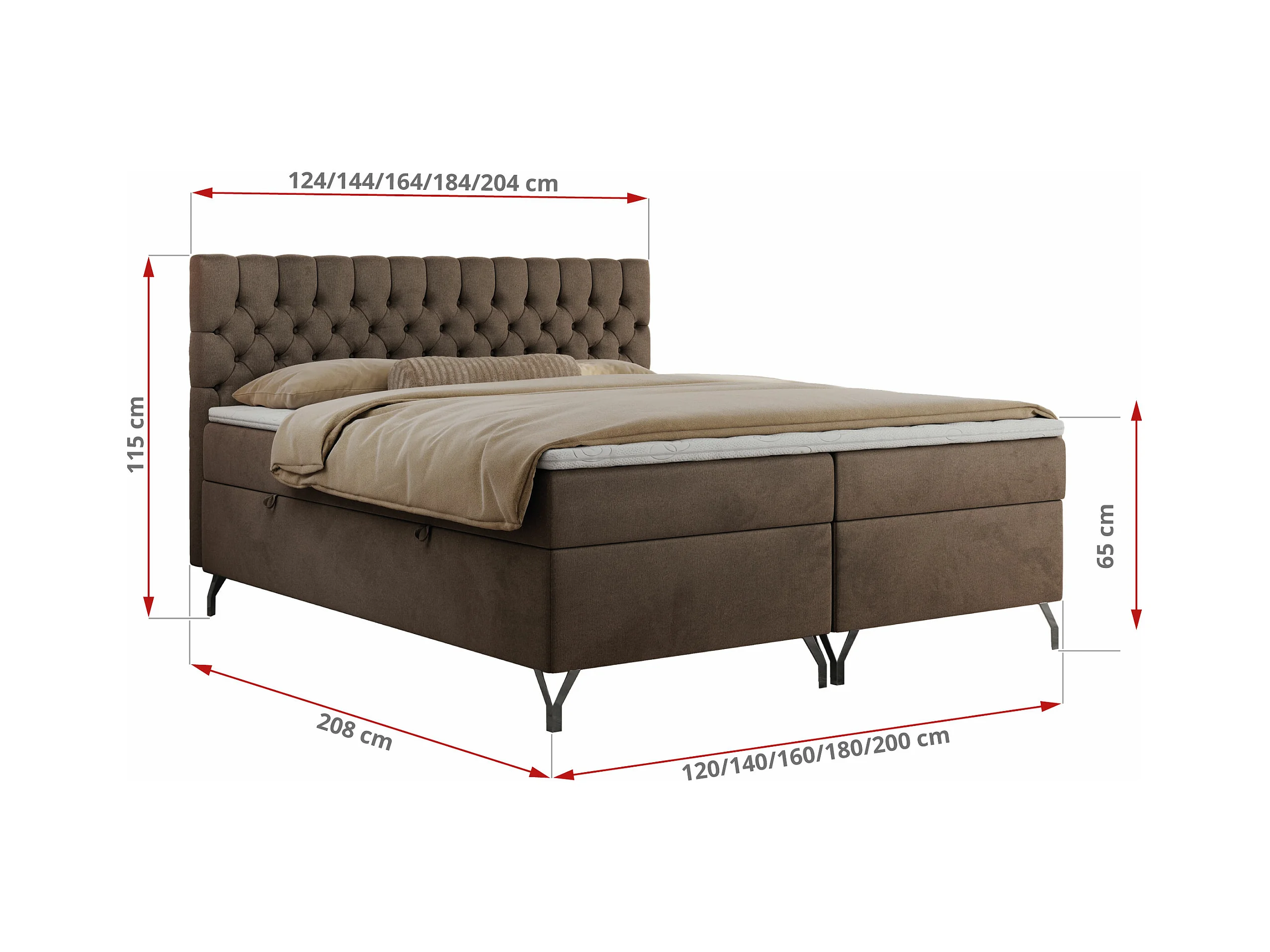 Boxspringbett GRIMALDI mit zwei Bettkästen, gesteppter Kopfstütze, Metallfüßen - 120x200 cm - H4 - Braun Velvet