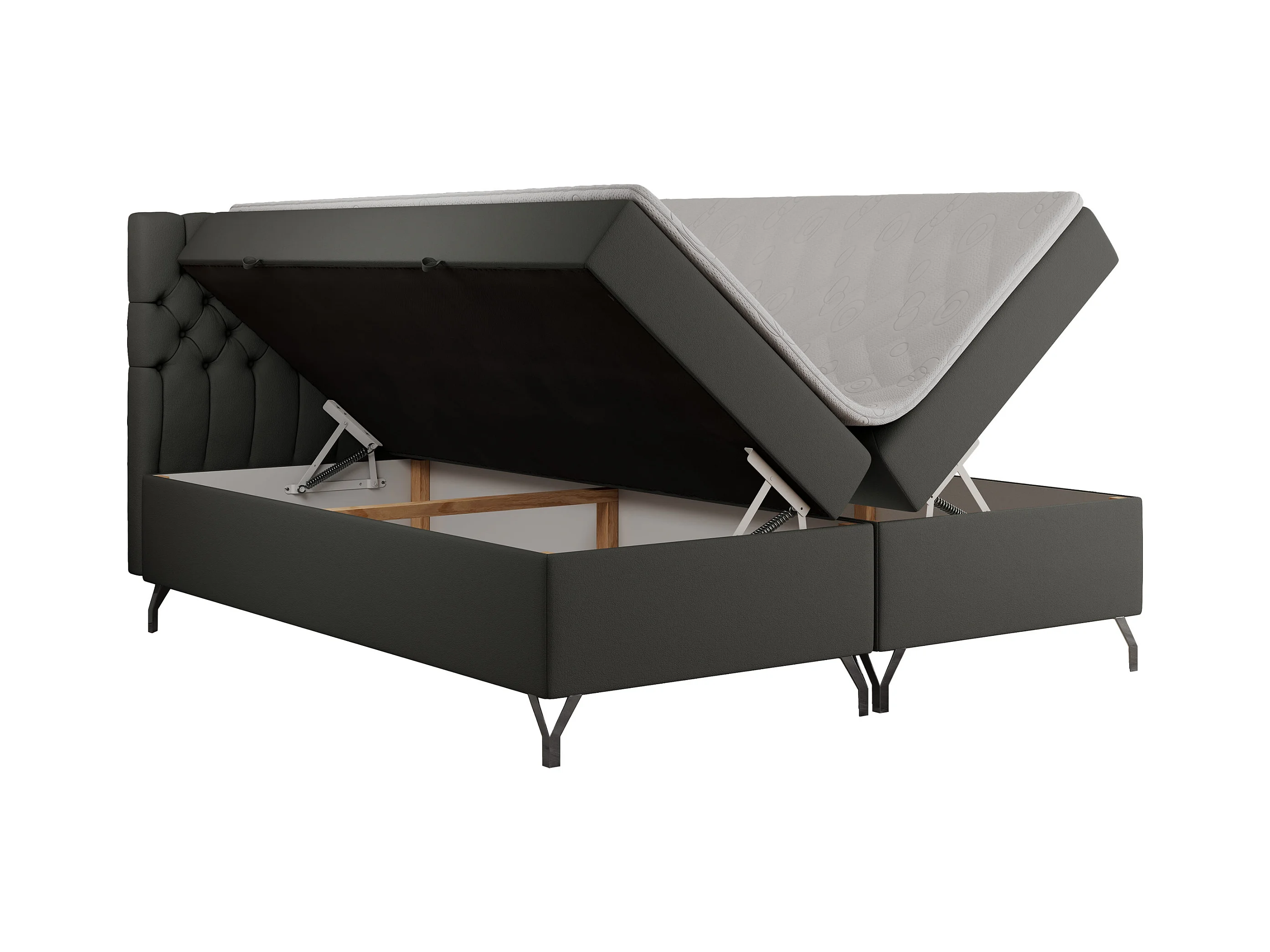 Boxspringbett GRIMALDI mit zwei Bettkästen, gesteppter Kopfstütze, Metallfüßen - 160x200 cm - H3 - Dunkelgrau Kunstleder