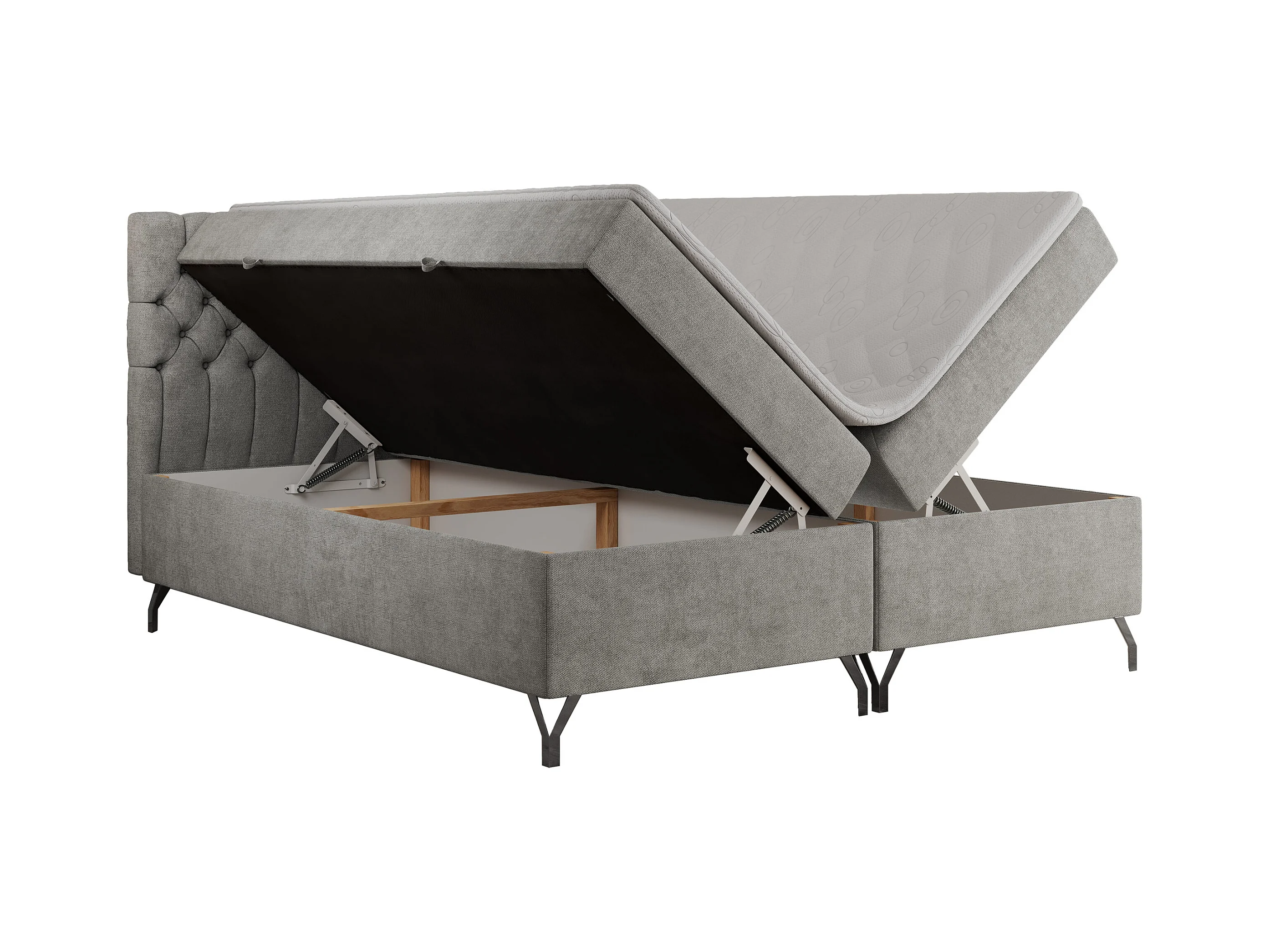 Boxspringbett GRIMALDI mit zwei Bettkästen, gesteppter Kopfstütze, Metallfüßen - 160x200 cm - H4 - Hellgrau Strukture