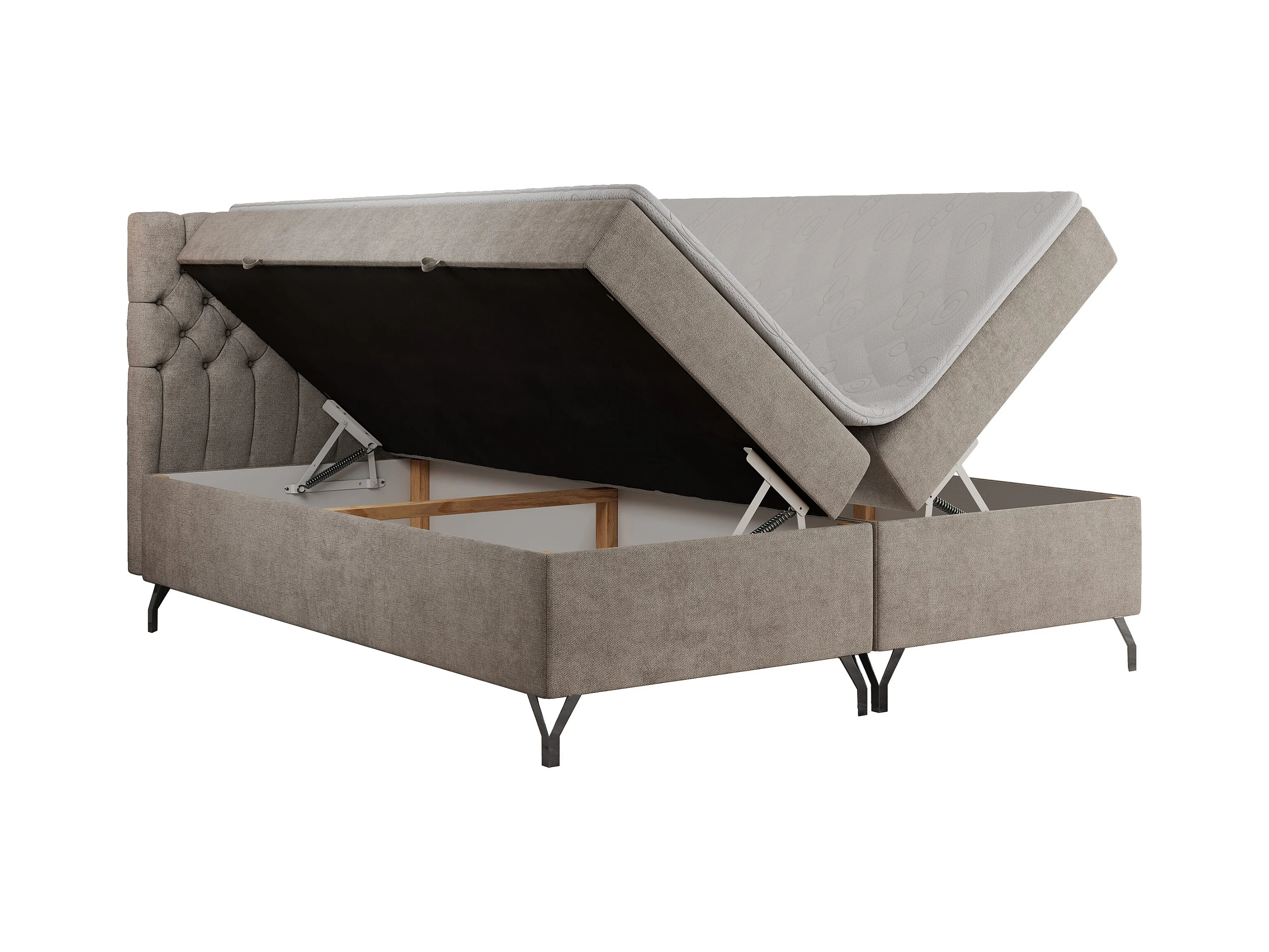 Boxspringbett GRIMALDI mit zwei Bettkästen, gesteppter Kopfstütze, Metallfüßen - 200x200 cm - H4 - Beige Strukture