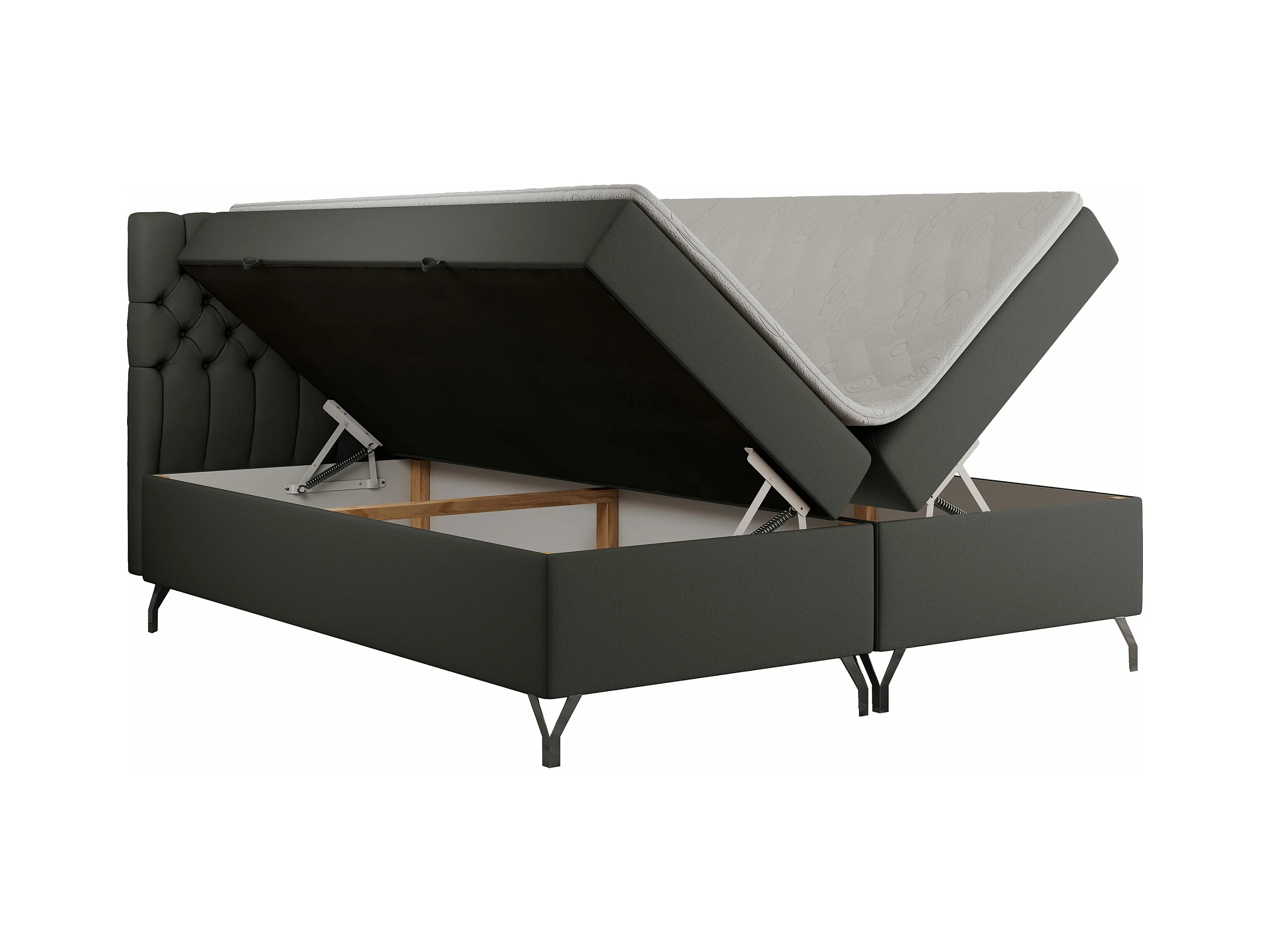Boxspringbett GRIMALDI mit zwei Bettkästen, gesteppter Kopfstütze, Metallfüßen - 200x200 cm - H4 - Dunkelgrau Kunstleder
