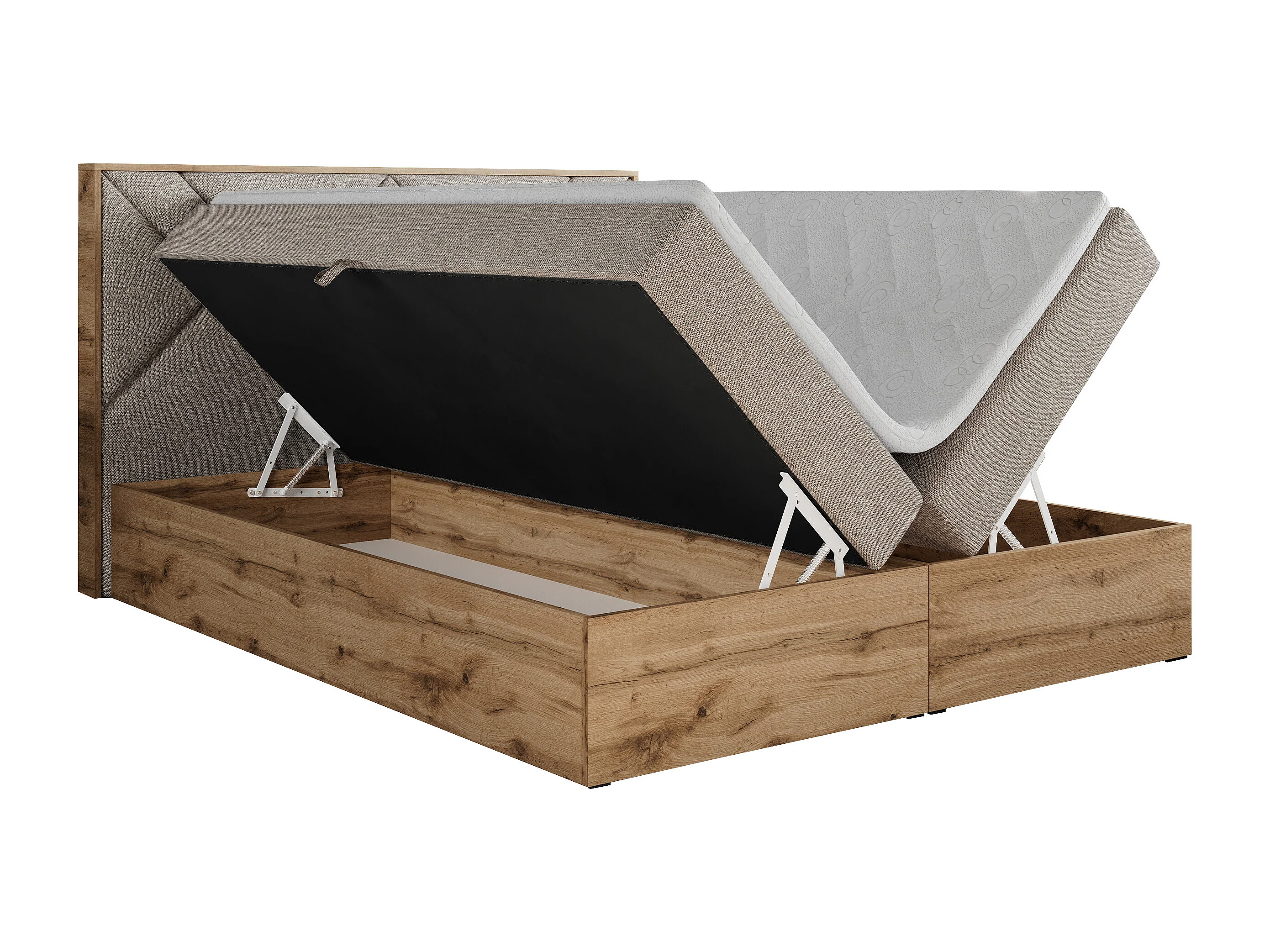 Boxspringbett GUNAR - gepolster kopfteil, Doppelbett mit Multipocket-Matratze, zwei Bettkästen - 120x200 cm - H4 - Beige Strukture