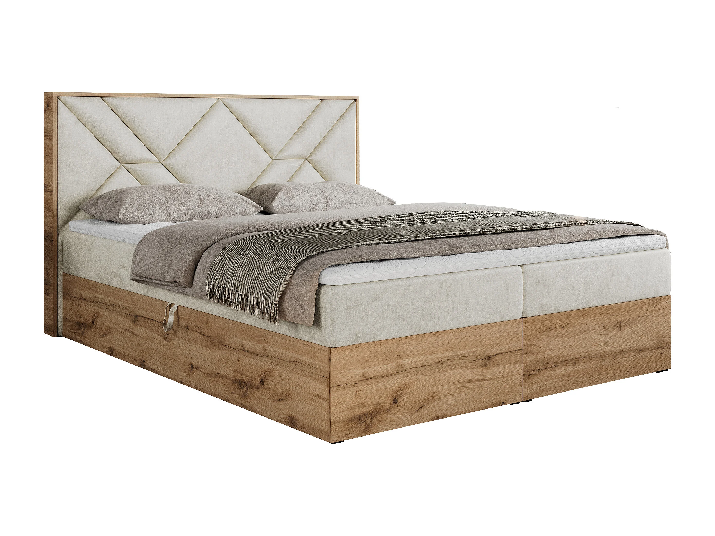 Boxspringbett GUNAR - gepolster kopfteil, Doppelbett mit Multipocket-Matratze, zwei Bettkästen - 140x200 cm - H4 - Beige Velvet