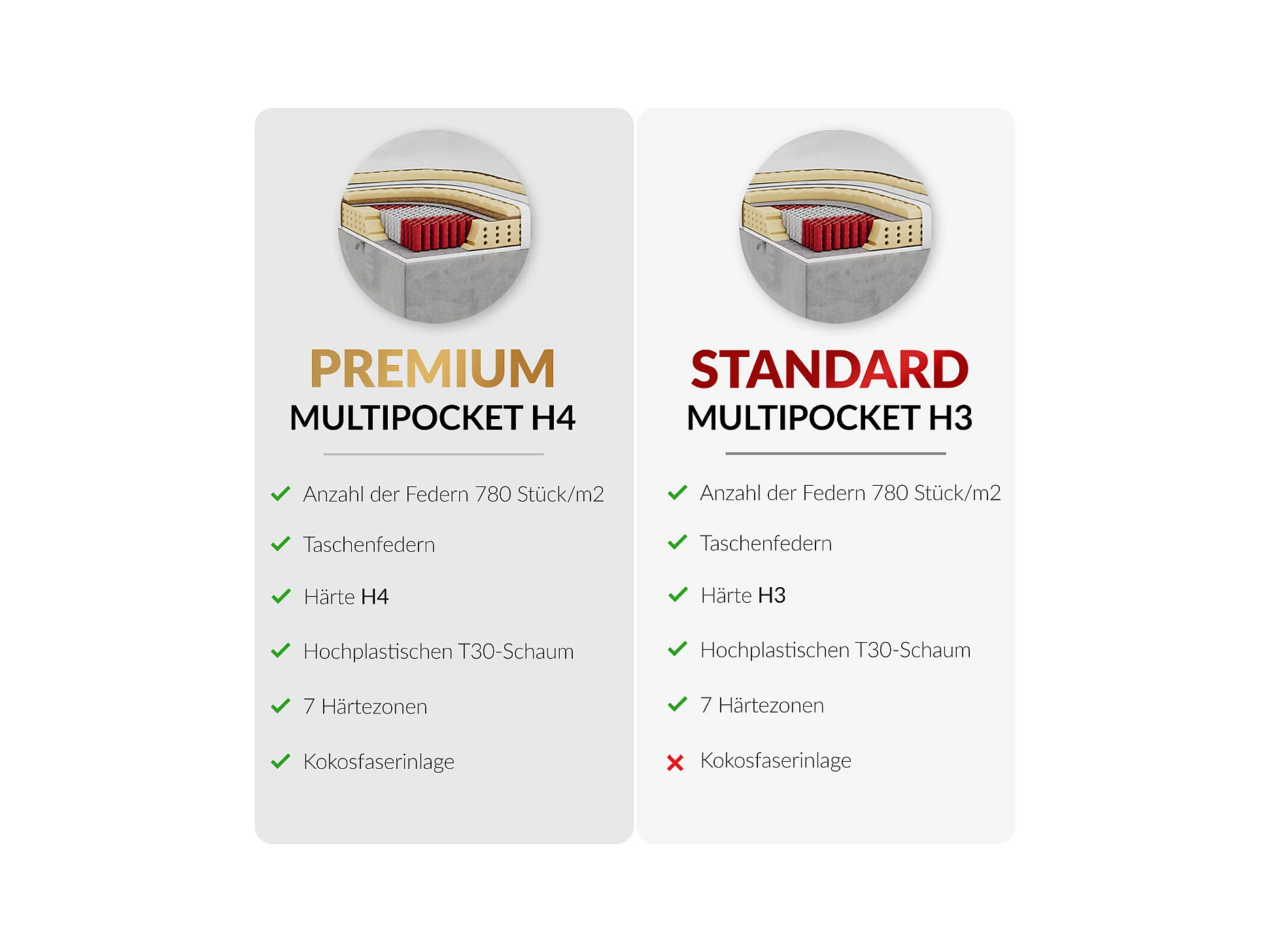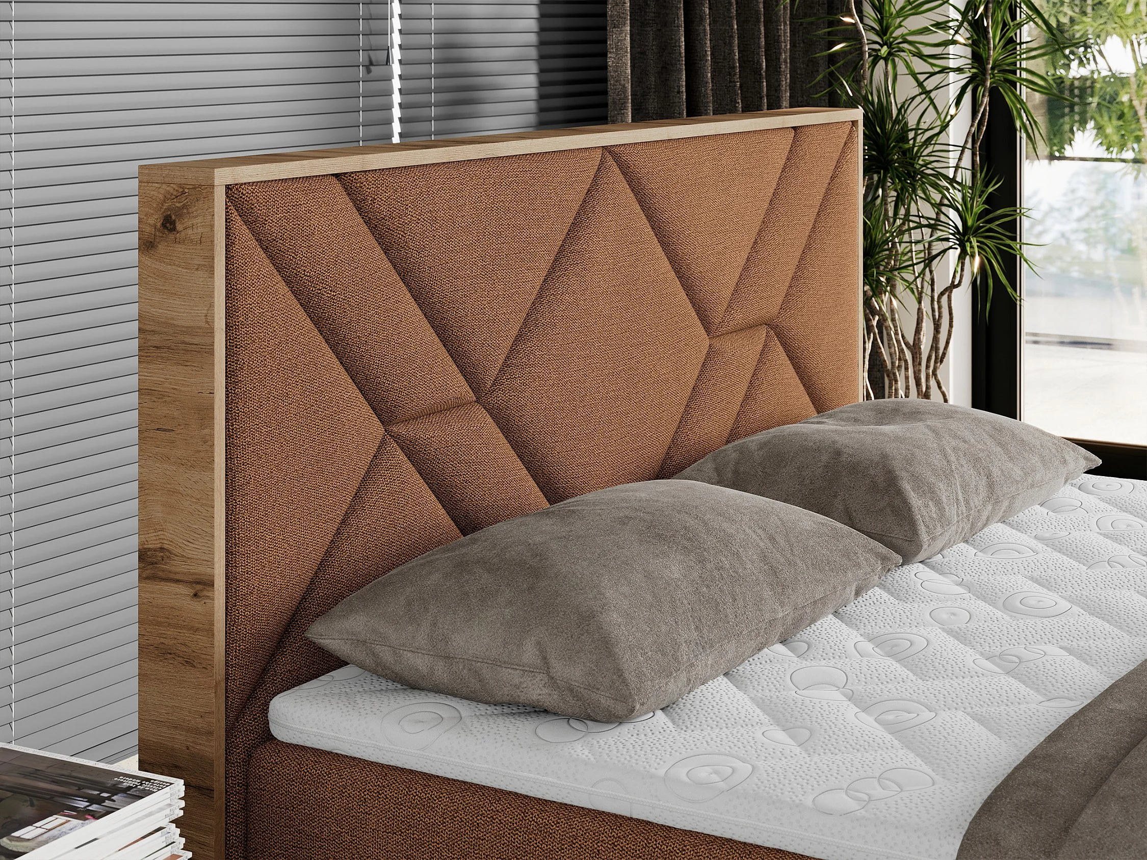 Boxspringbett GUNAR - gepolster kopfteil, Doppelbett mit Multipocket-Matratze, zwei Bettkästen - 140x200 cm - H4 - Orange Strukture