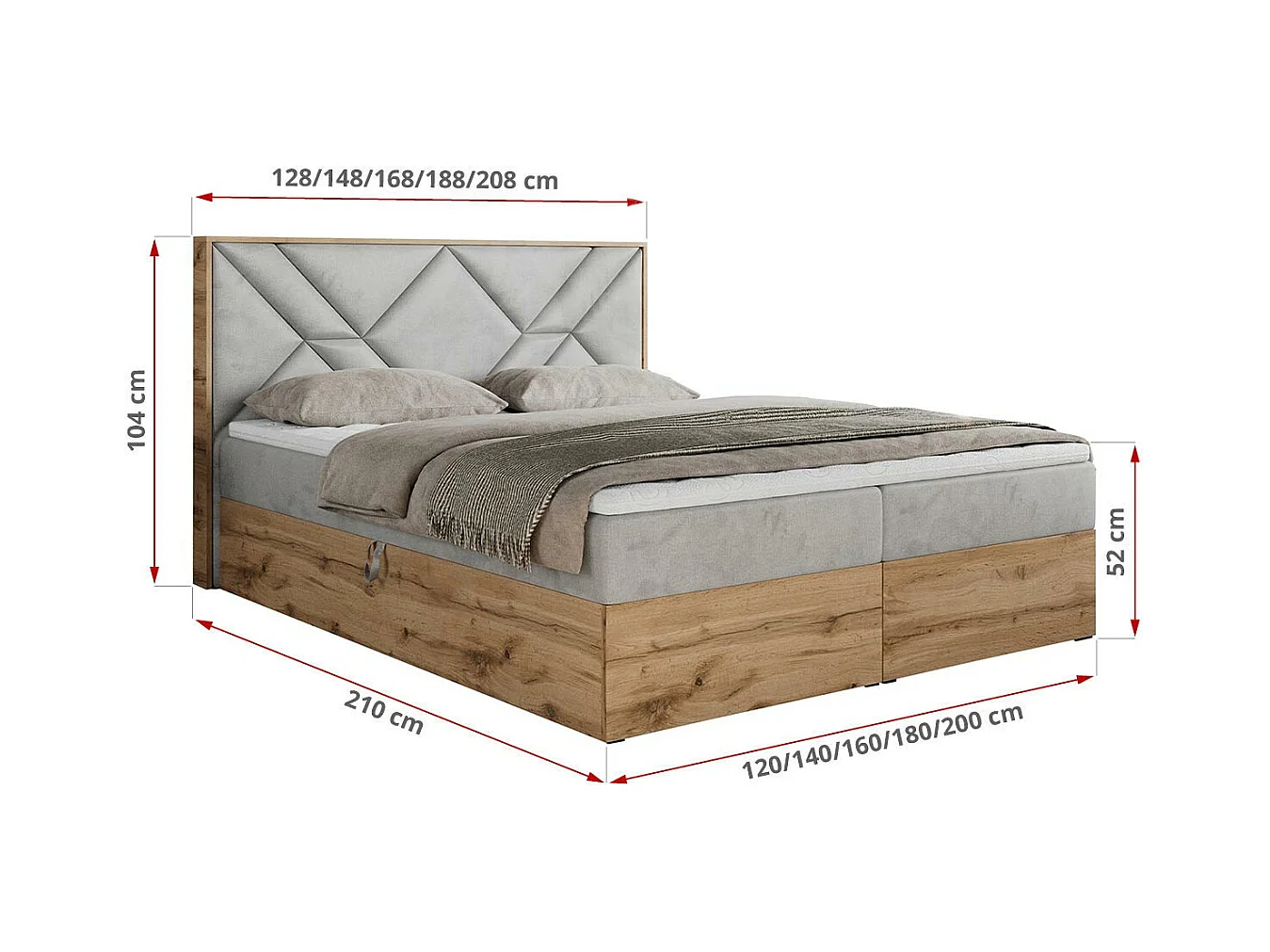 Boxspringbett GUNAR - gepolster kopfteil, Doppelbett mit Multipocket-Matratze, zwei Bettkästen - 180x200 cm - H3 - Hellgrau Velvet