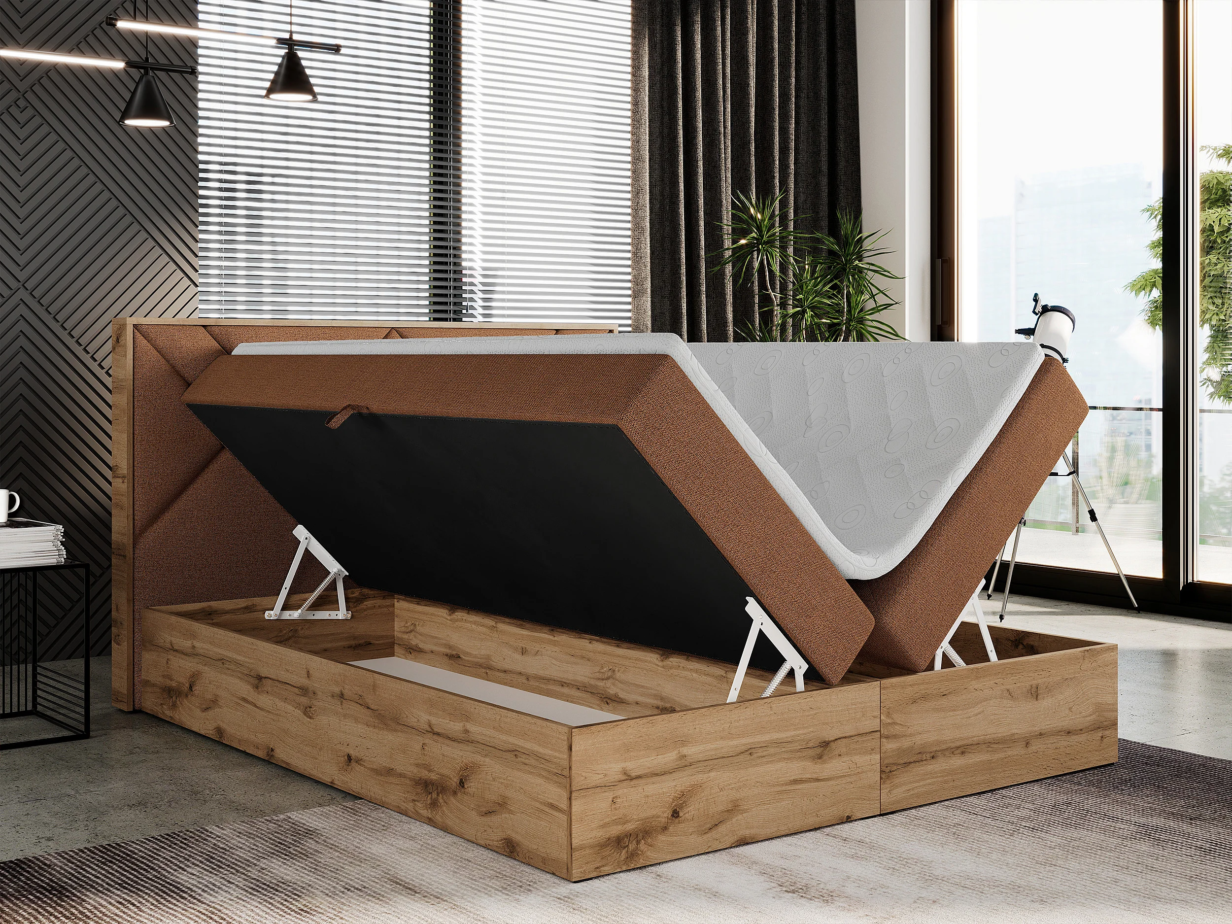 Boxspringbett GUNAR - gepolster kopfteil, Doppelbett mit Multipocket-Matratze, zwei Bettkästen - 200x200 cm - H4 - Orange Strukture