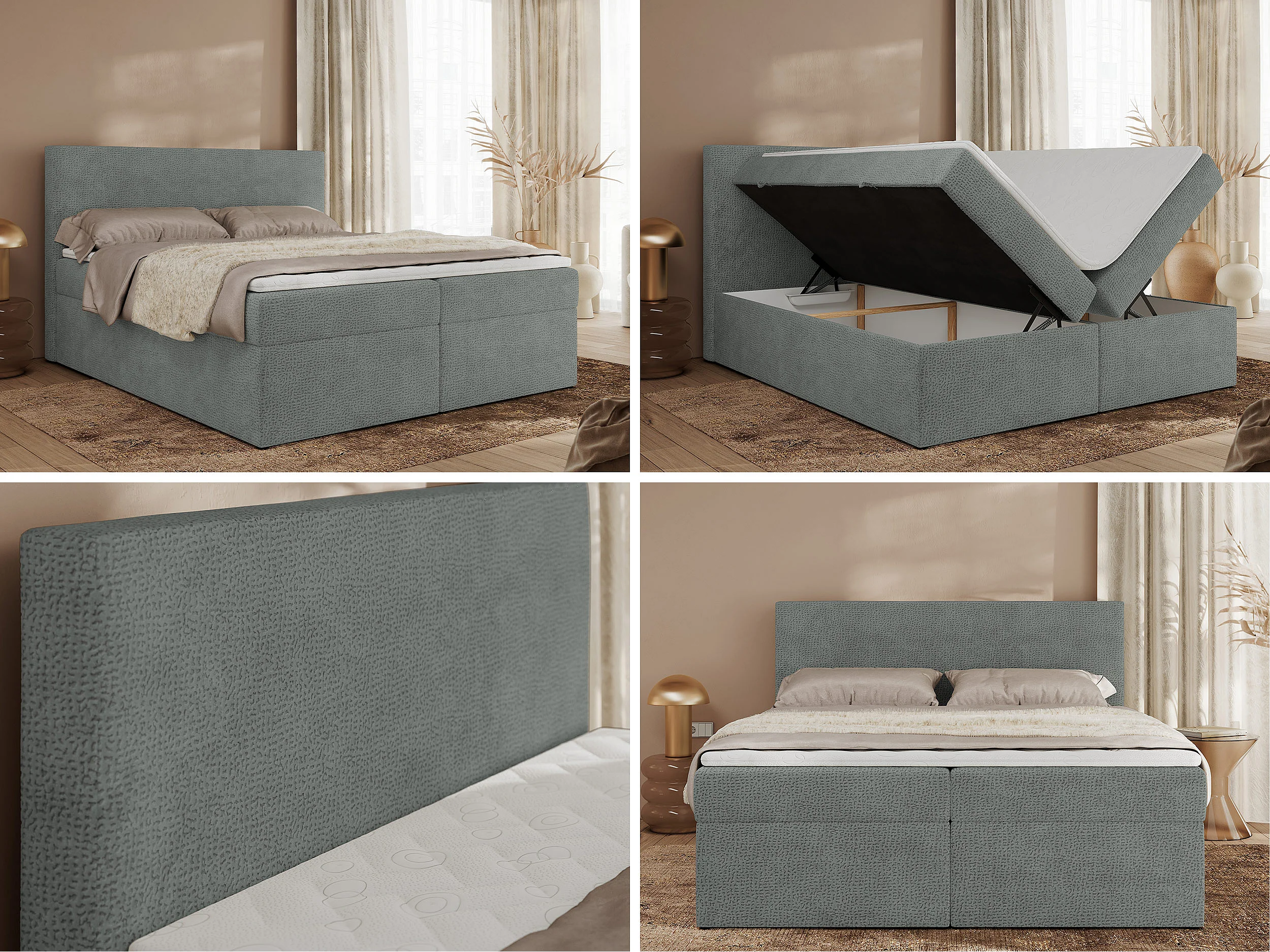 Boxspringbett JAGUAR - Doppelbett mit Multipocket-Matratze und Topper, Struktur dekostoff, zwei Bettkästen - 200x200 cm - H3 - Grau Struktur