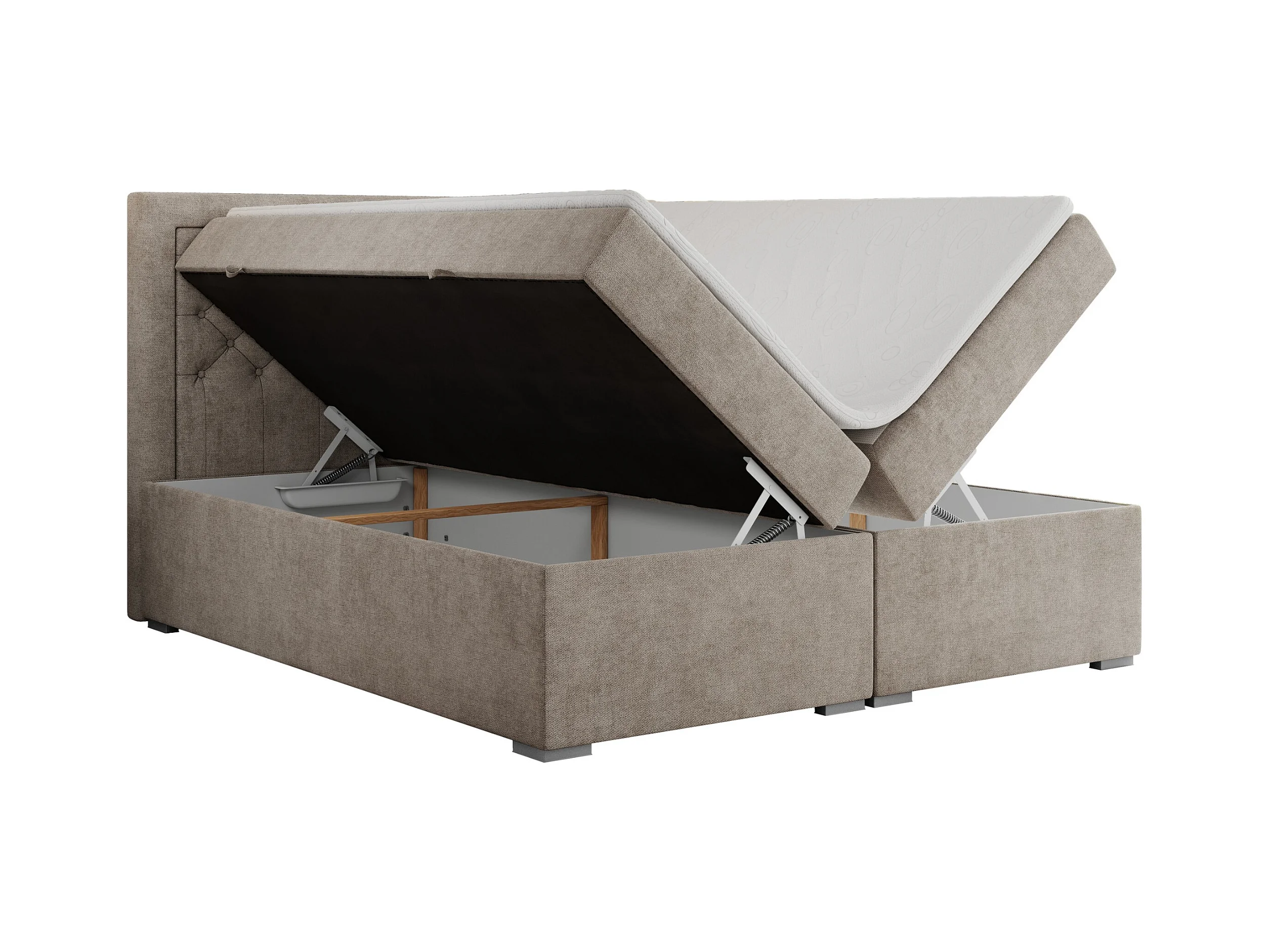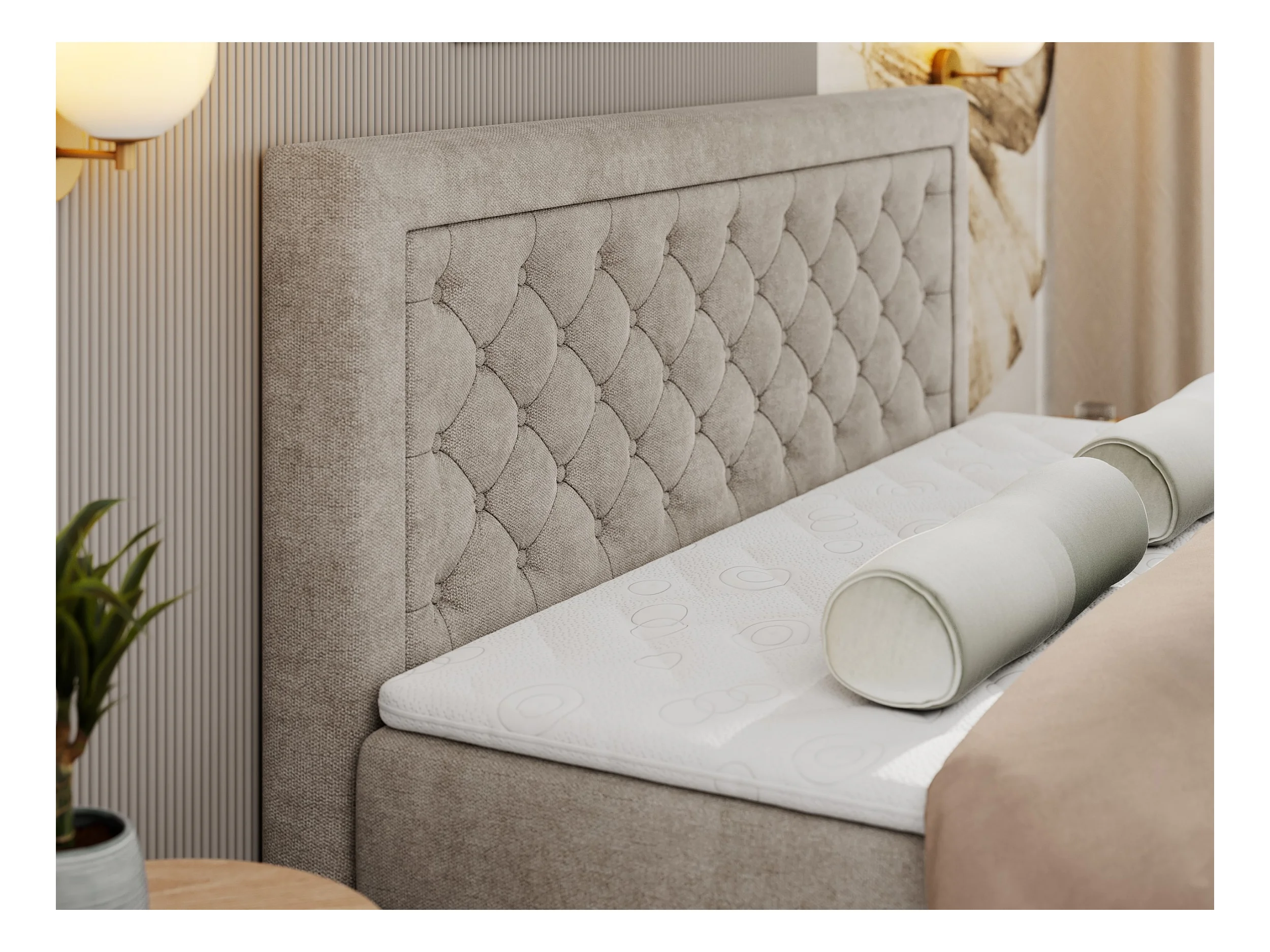 Boxspringbett JASIR - mit gestepptem Kopfteil, Doppelbett für Schlafzimmer, Multipocket-Matratze, Stauraum - 120x200 cm - H3 - Beige Strukture