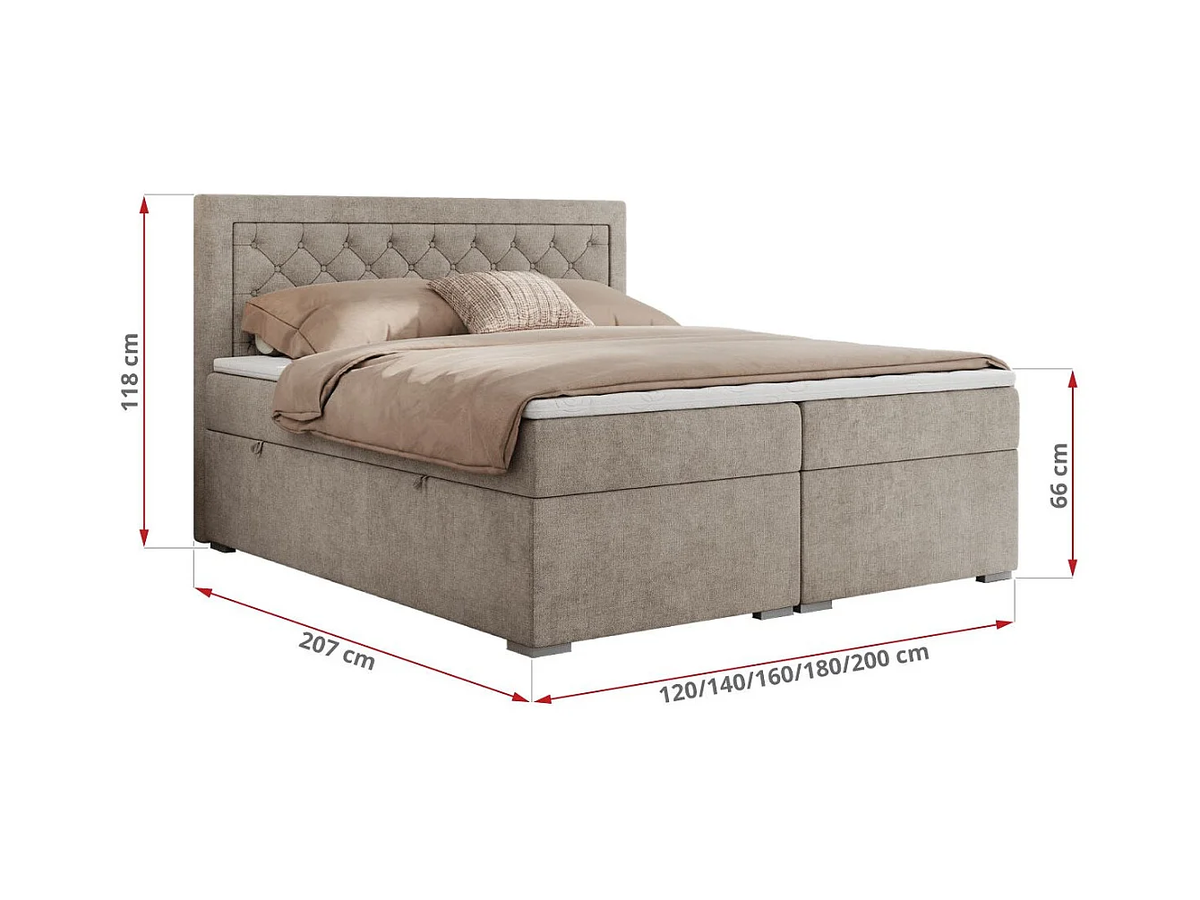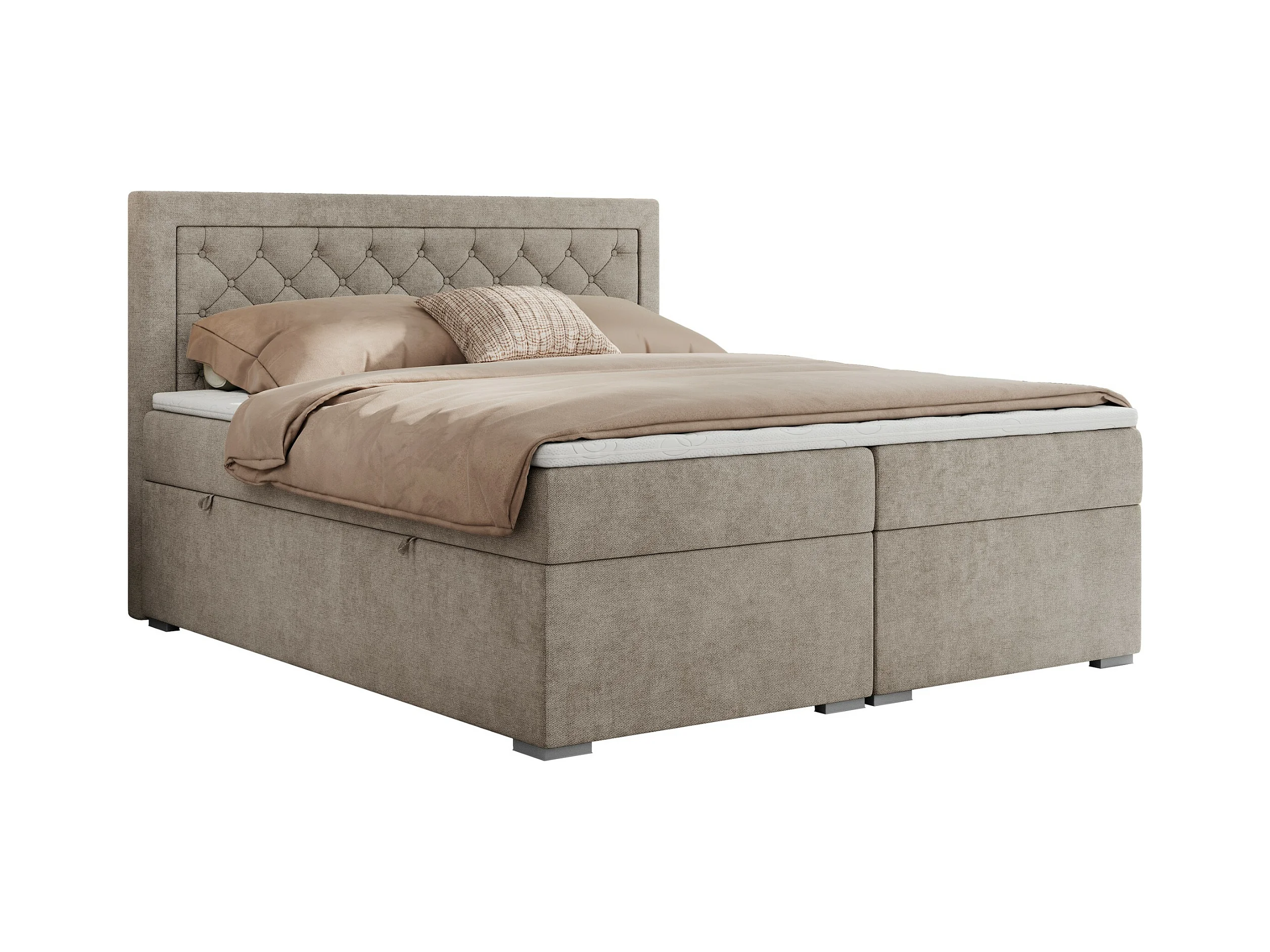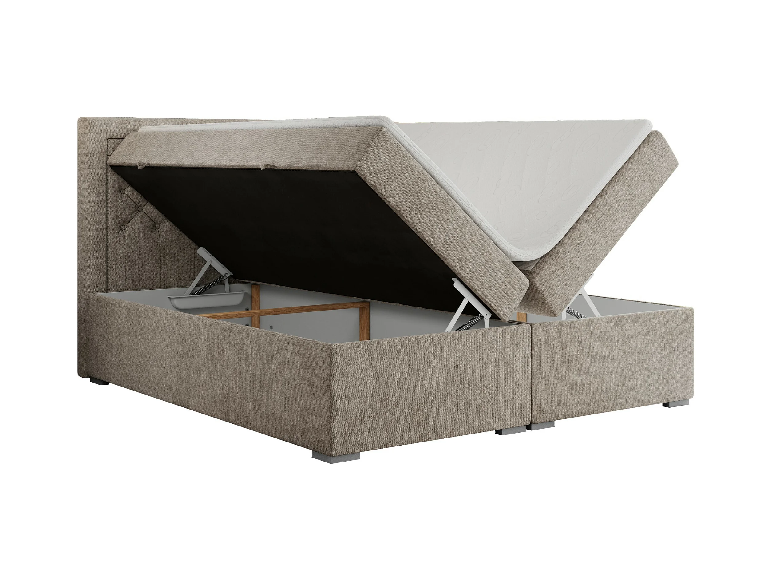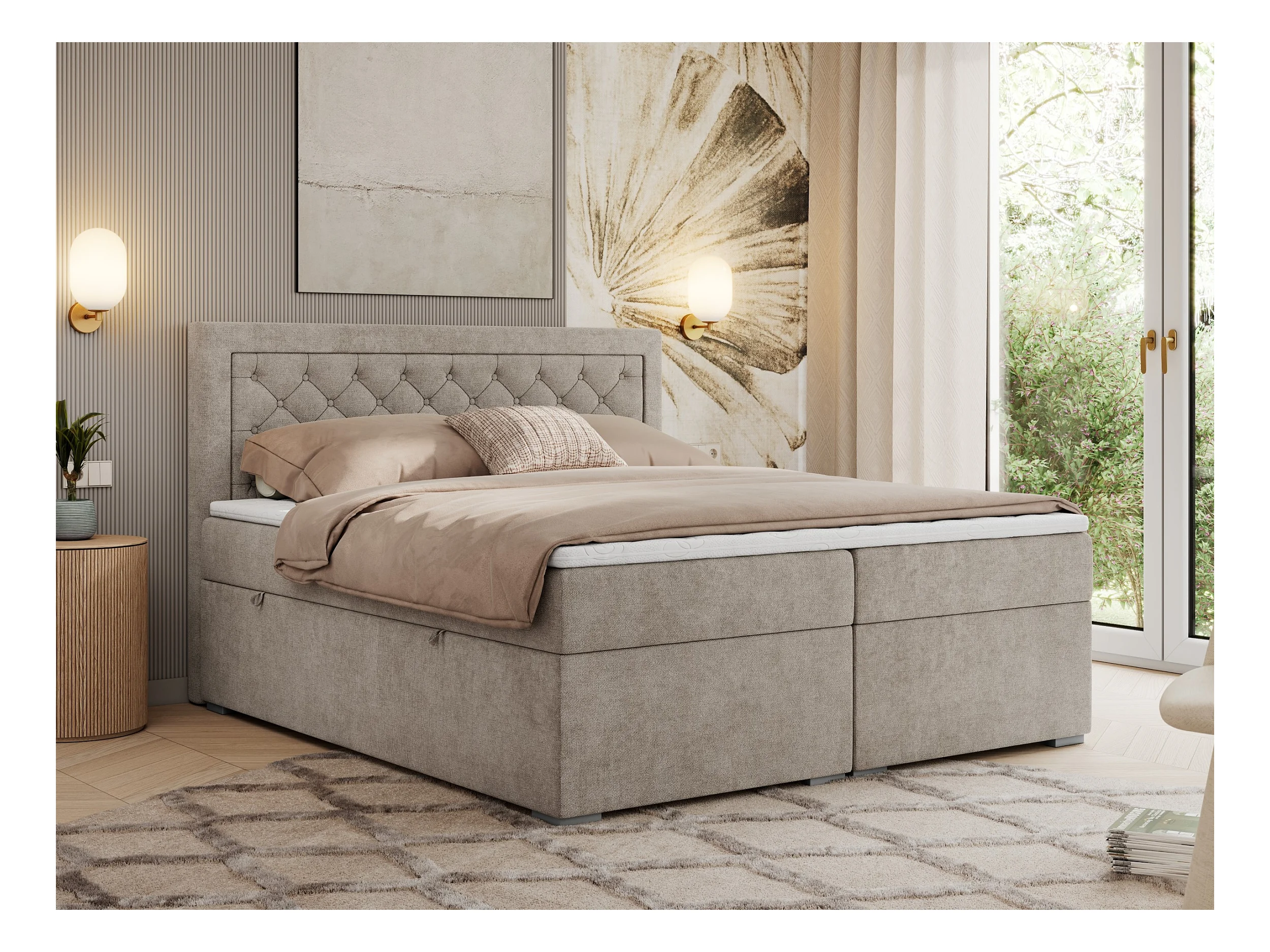 Boxspringbett JASIR - mit gestepptem Kopfteil, Doppelbett für Schlafzimmer, Multipocket-Matratze, Stauraum - 140x200 cm - H3 - Beige Strukture