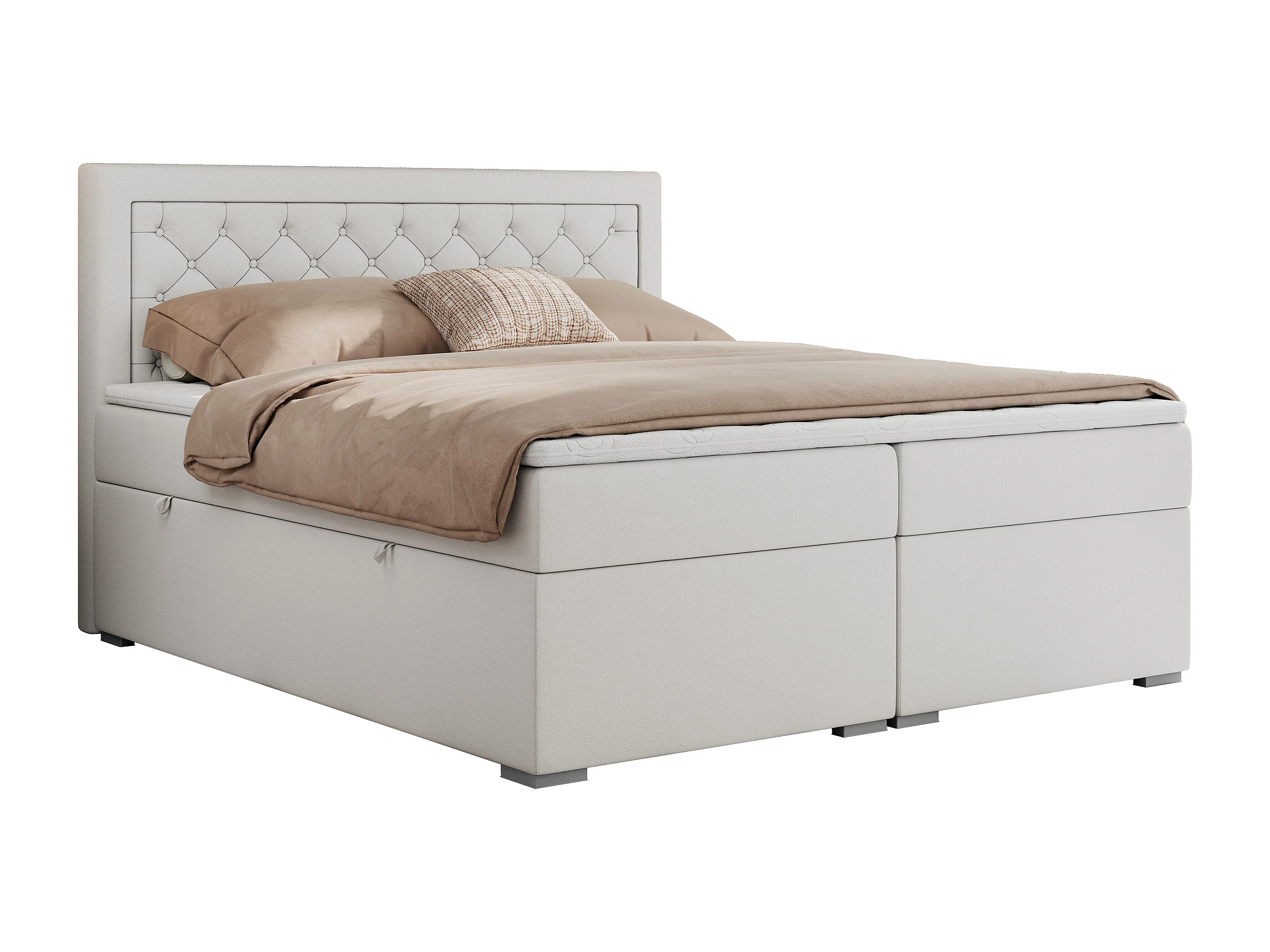 Boxspringbett JASIR - mit gestepptem Kopfteil, Doppelbett für Schlafzimmer, Multipocket-Matratze, Stauraum - 140x200 cm - H3 - Weiß Kunstleder