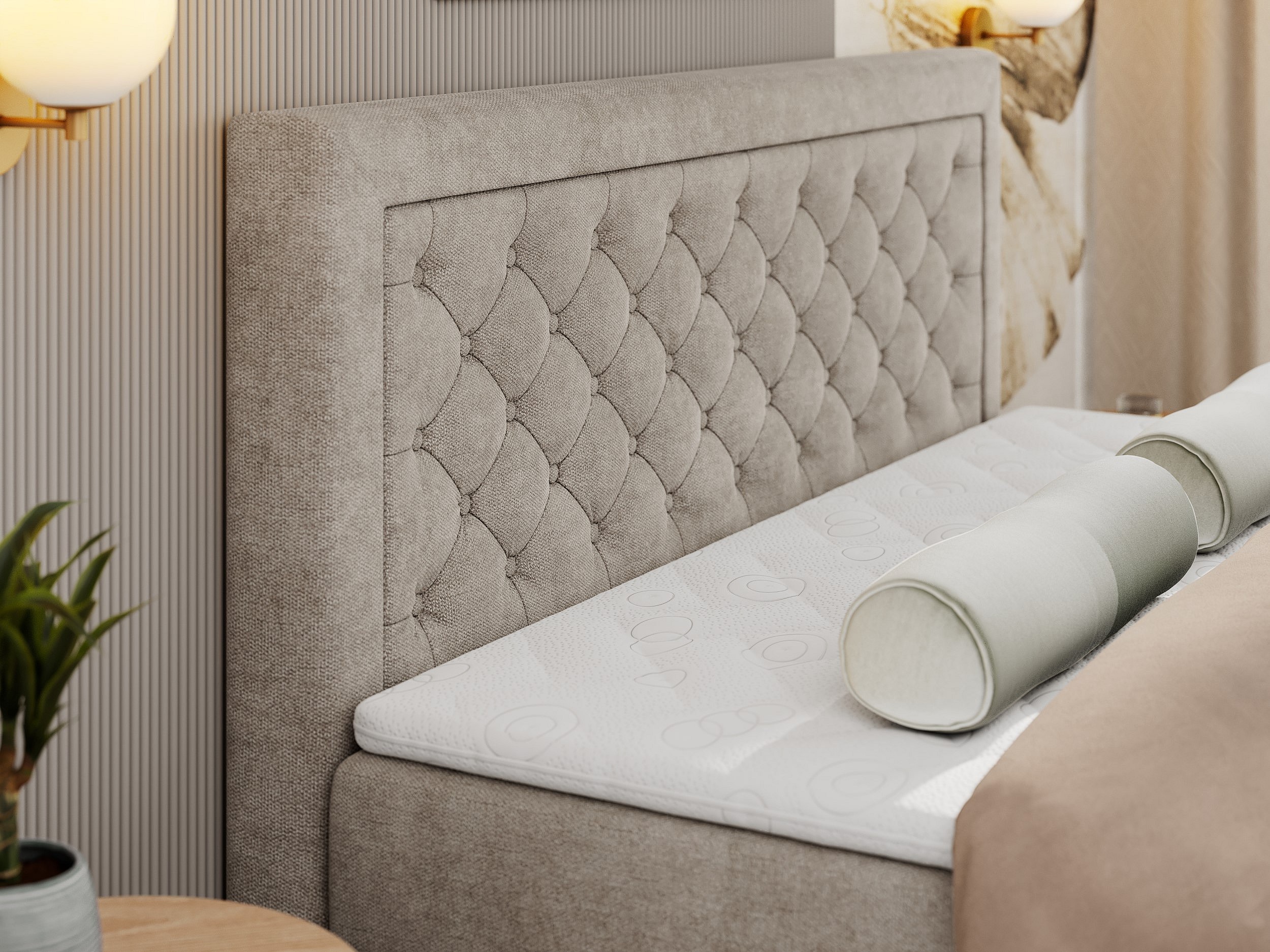 Boxspringbett JASIR - mit gestepptem Kopfteil, Doppelbett für Schlafzimmer, Multipocket-Matratze, Stauraum - 140x200 cm - H4 - Beige Strukture