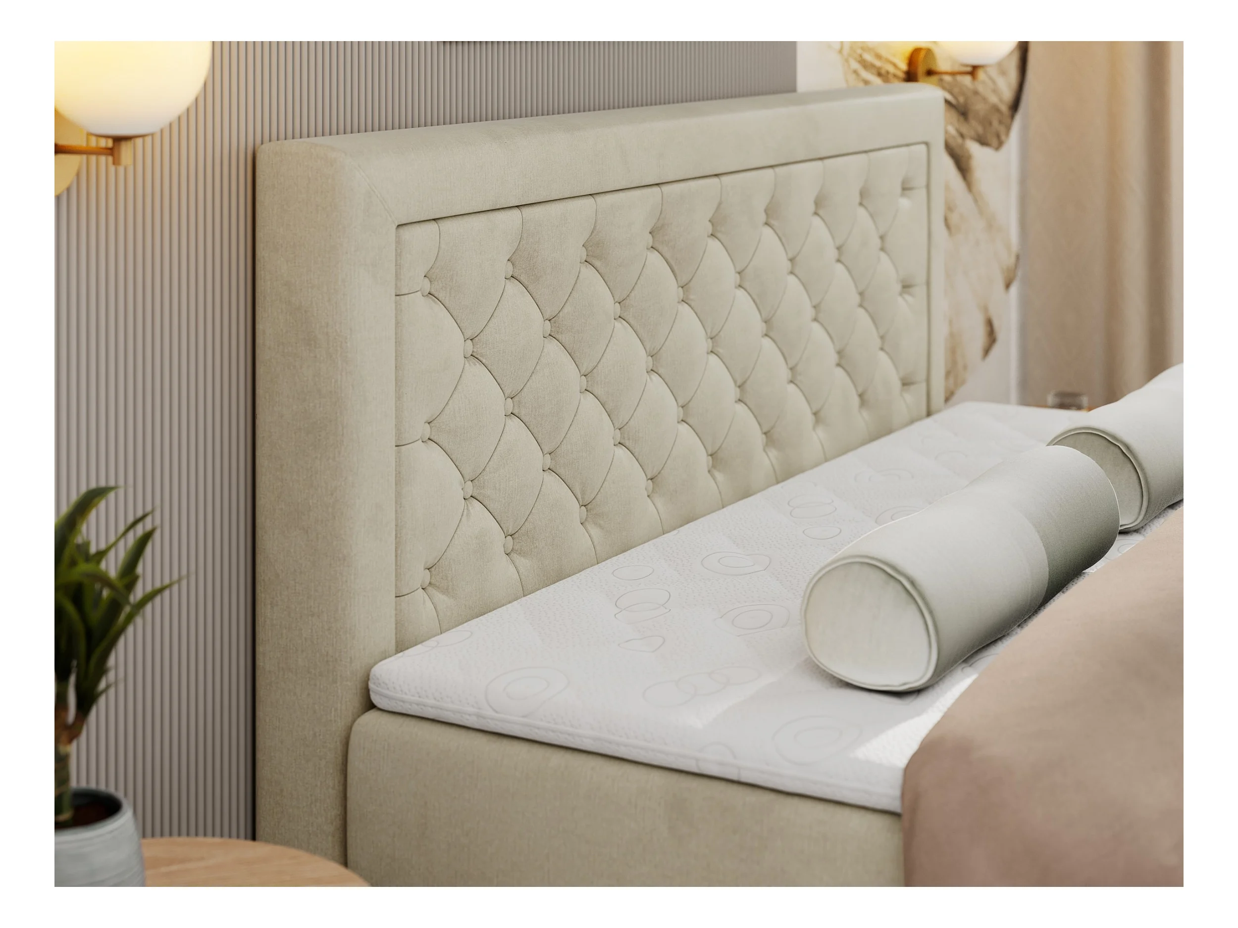 Boxspringbett JASIR - mit gestepptem Kopfteil, Doppelbett für Schlafzimmer, Multipocket-Matratze, Stauraum - 160x200 cm - H3 - Beige Velvet