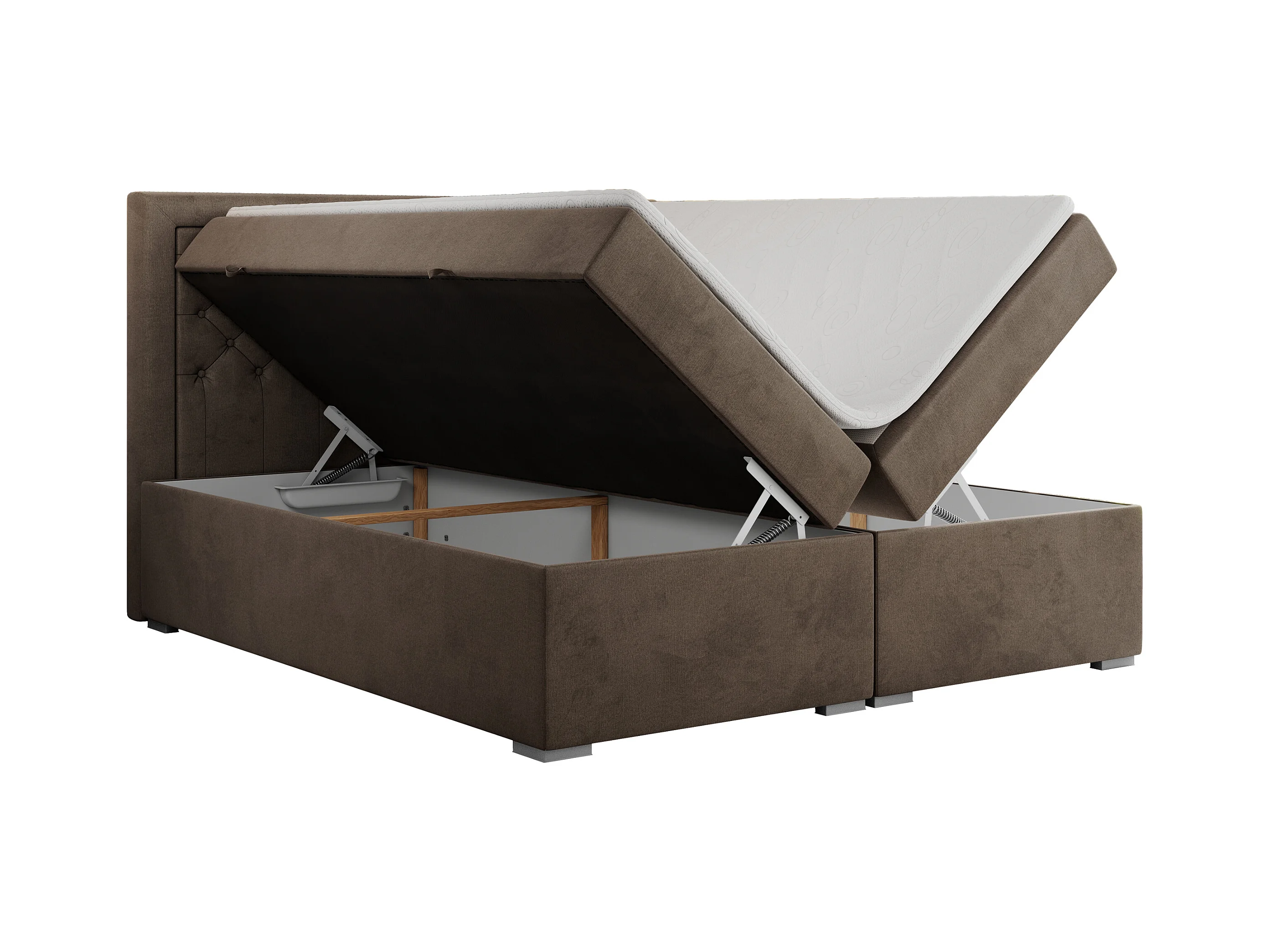 Boxspringbett JASIR - mit gestepptem Kopfteil, Doppelbett für Schlafzimmer, Multipocket-Matratze, Stauraum - 160x200 cm - H3 - Braun Velvet