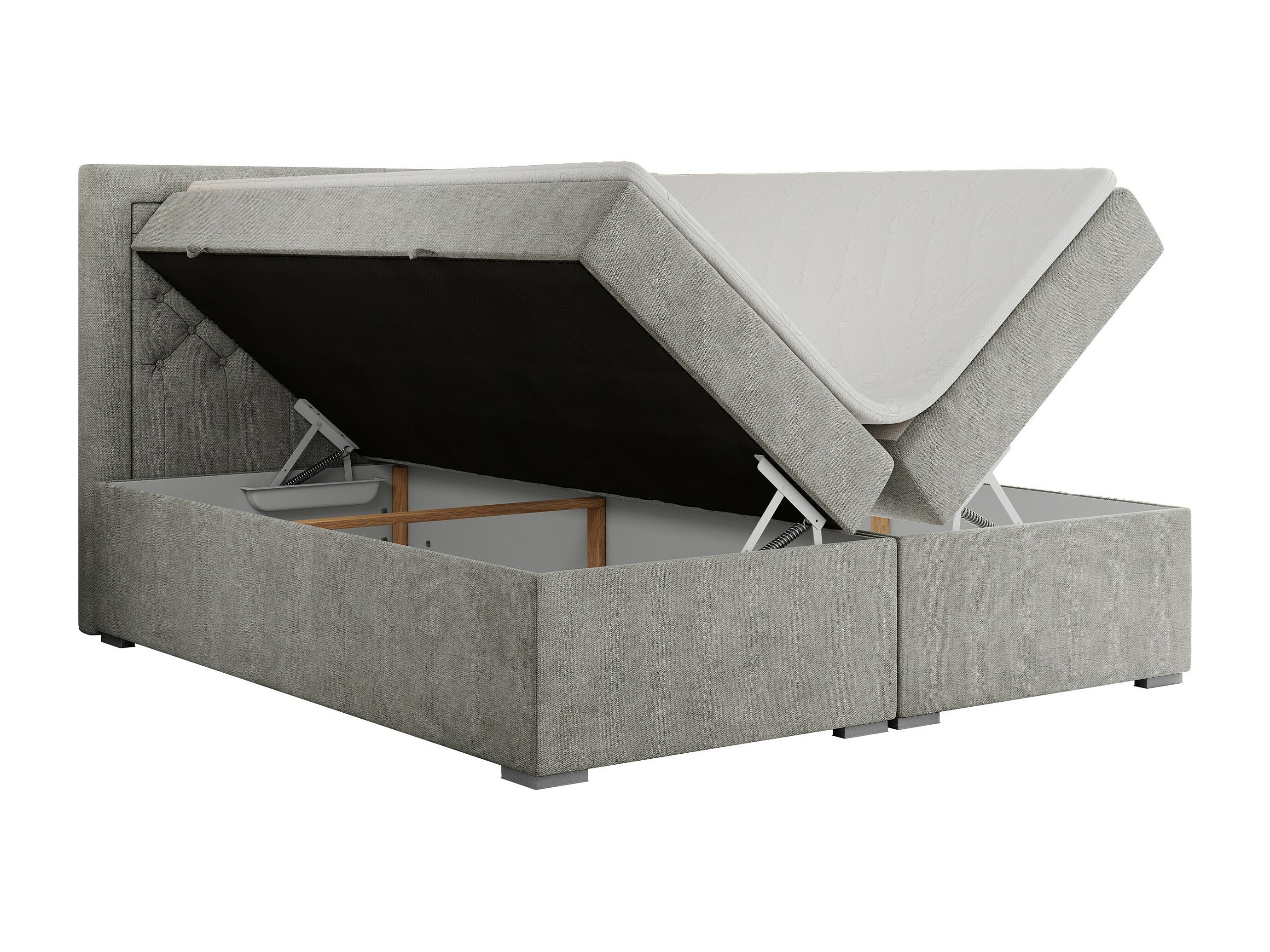 Boxspringbett JASIR - mit gestepptem Kopfteil, Doppelbett für Schlafzimmer, Multipocket-Matratze, Stauraum - 160x200 cm - H3 - Hellgrau Strukture
