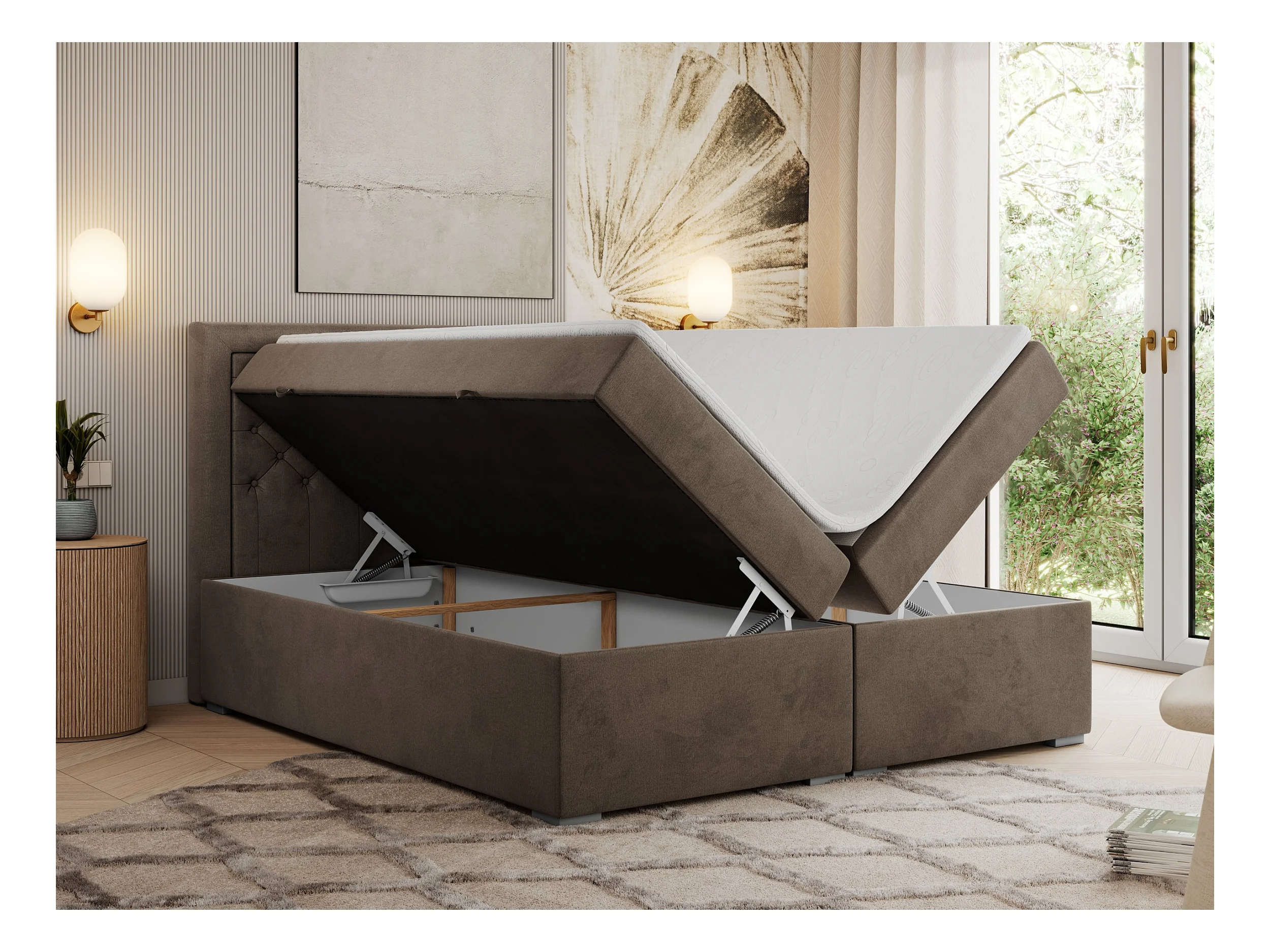 Boxspringbett JASIR - mit gestepptem Kopfteil, Doppelbett für Schlafzimmer, Multipocket-Matratze, Stauraum - 160x200 cm - H4 - Braun Velvet